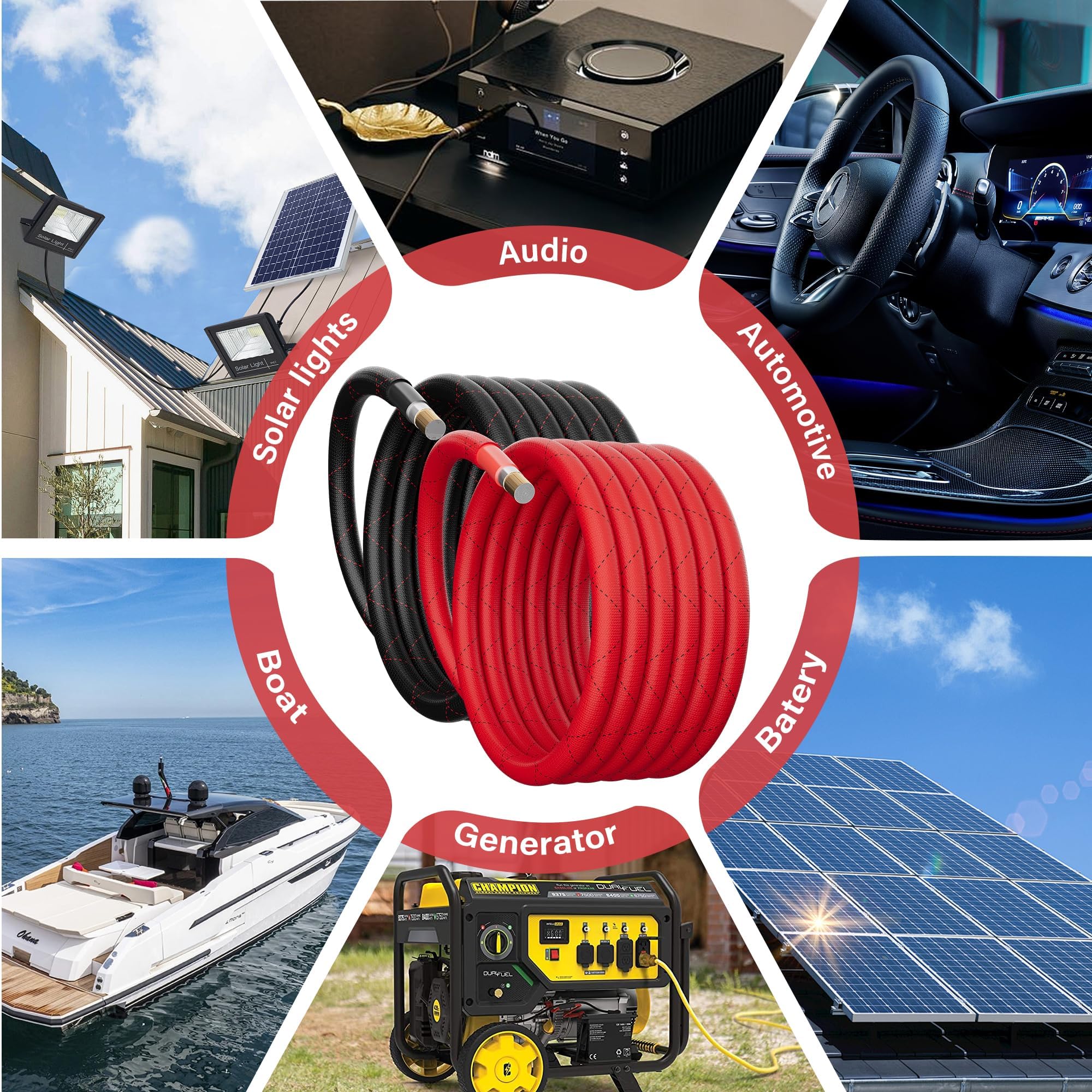 Wide Range of Applications: These cables are widely used in various automotive sound systems, car amplifiers, generators, solar systems, boats, and RVs. Whether for home audio, radio equipment, or industrial purposes, they provide stable power support and meet high-power transmission needs