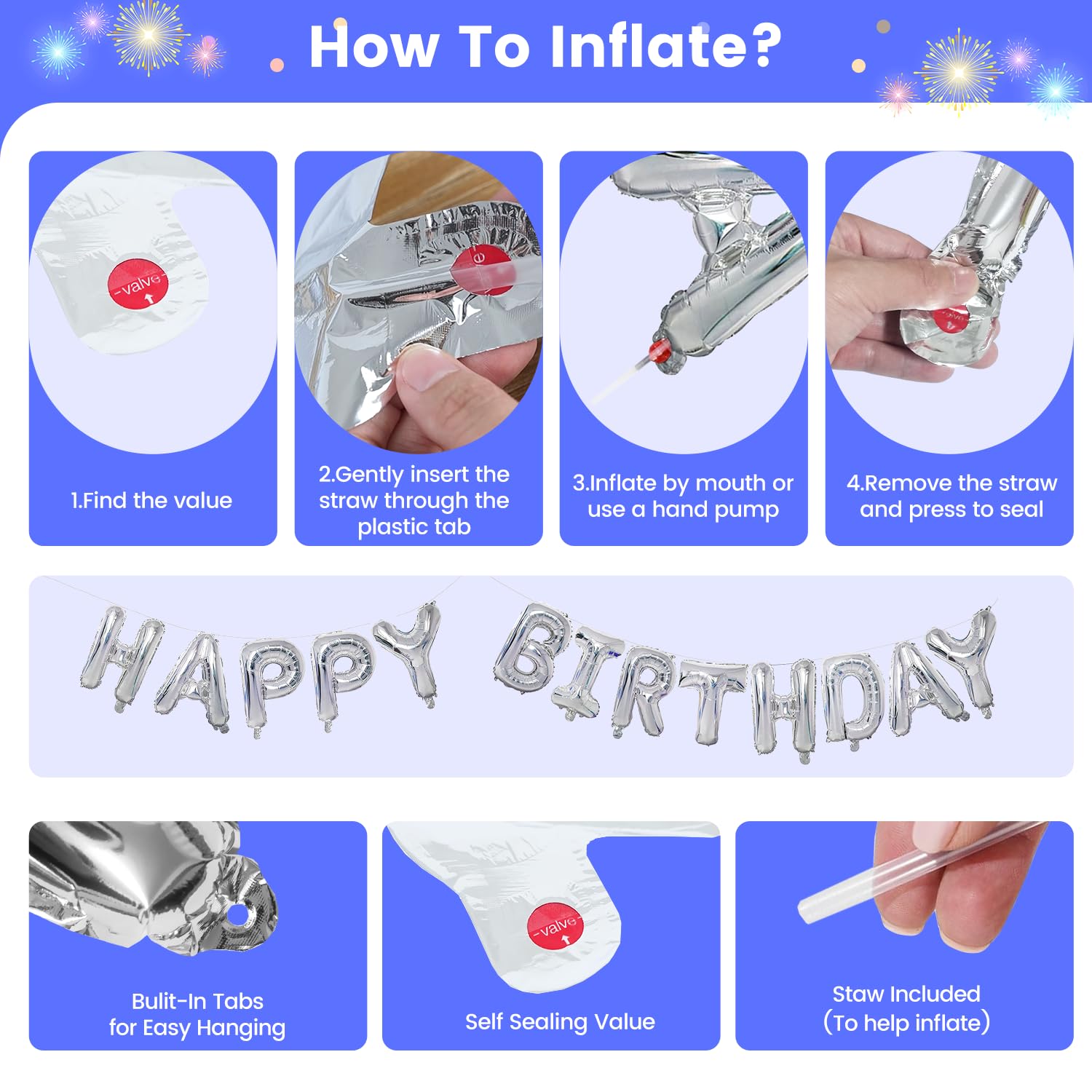 â«ăTime-Saving & Easy To Useă-Who has time for complicated decoration assembly when you are going to prepare a party? Now with our silvery birthday banners and easy-to-hang foil streamer, balloons arch kit, setting up your blue heme party is easier than ever! All left to do is to blow up the balloons with air or helium. You will really enjoy this easy, quick and fun activity!