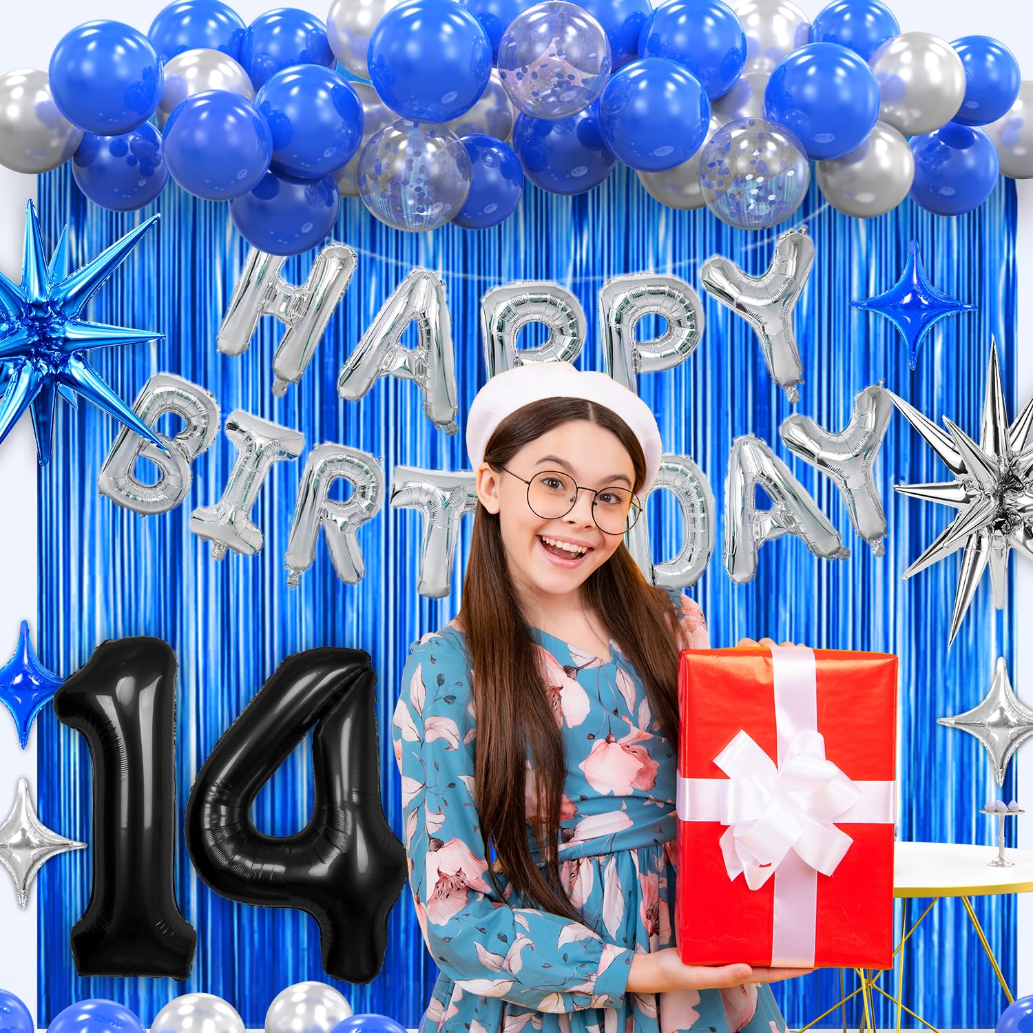 đ”ăFashion Blue Silvery Party Decorationsă- The blue silvery birthday decoration set is perfect for the 14th birthday party, which is a fun celebration with friends, Use this decorations kit, you can transform your party space with a glamorous blue silvery backdrop streamer and balloons.