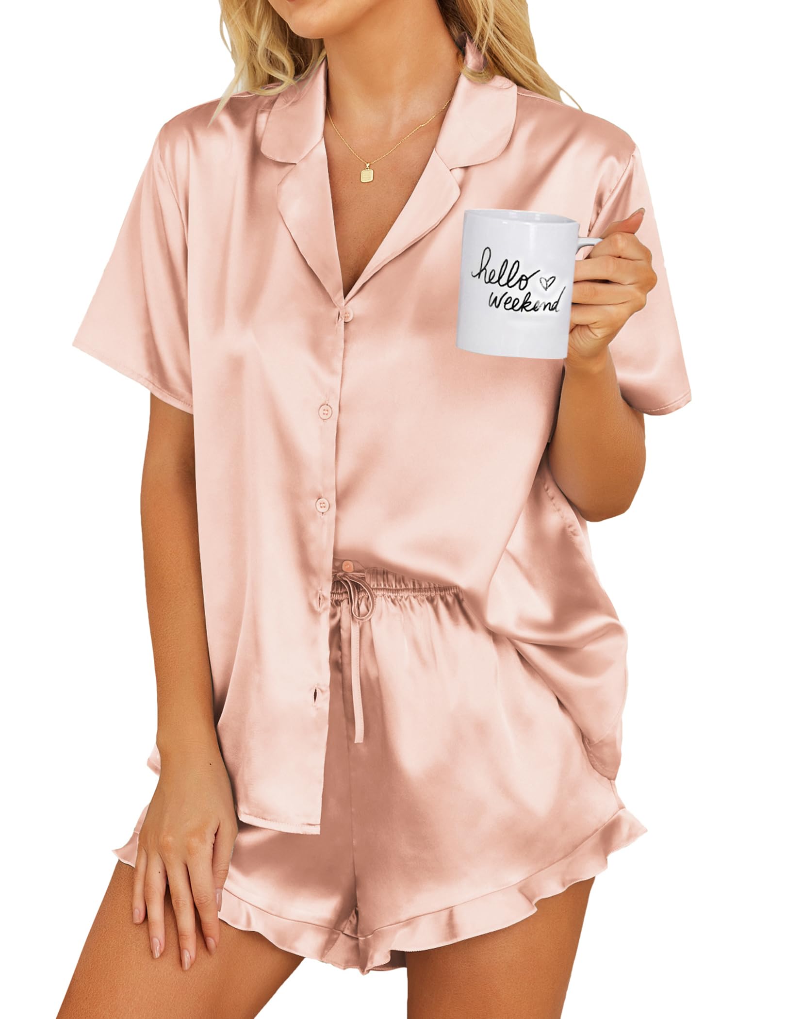 【High Quality Material】: The Super Soft Silk Pajama Set is made for 95%polyester5%spandex. Ultra Soft Silk Ekouaer Sleepwear, brings you more Breathble, Comfortable and Skin-Friendly Feeling