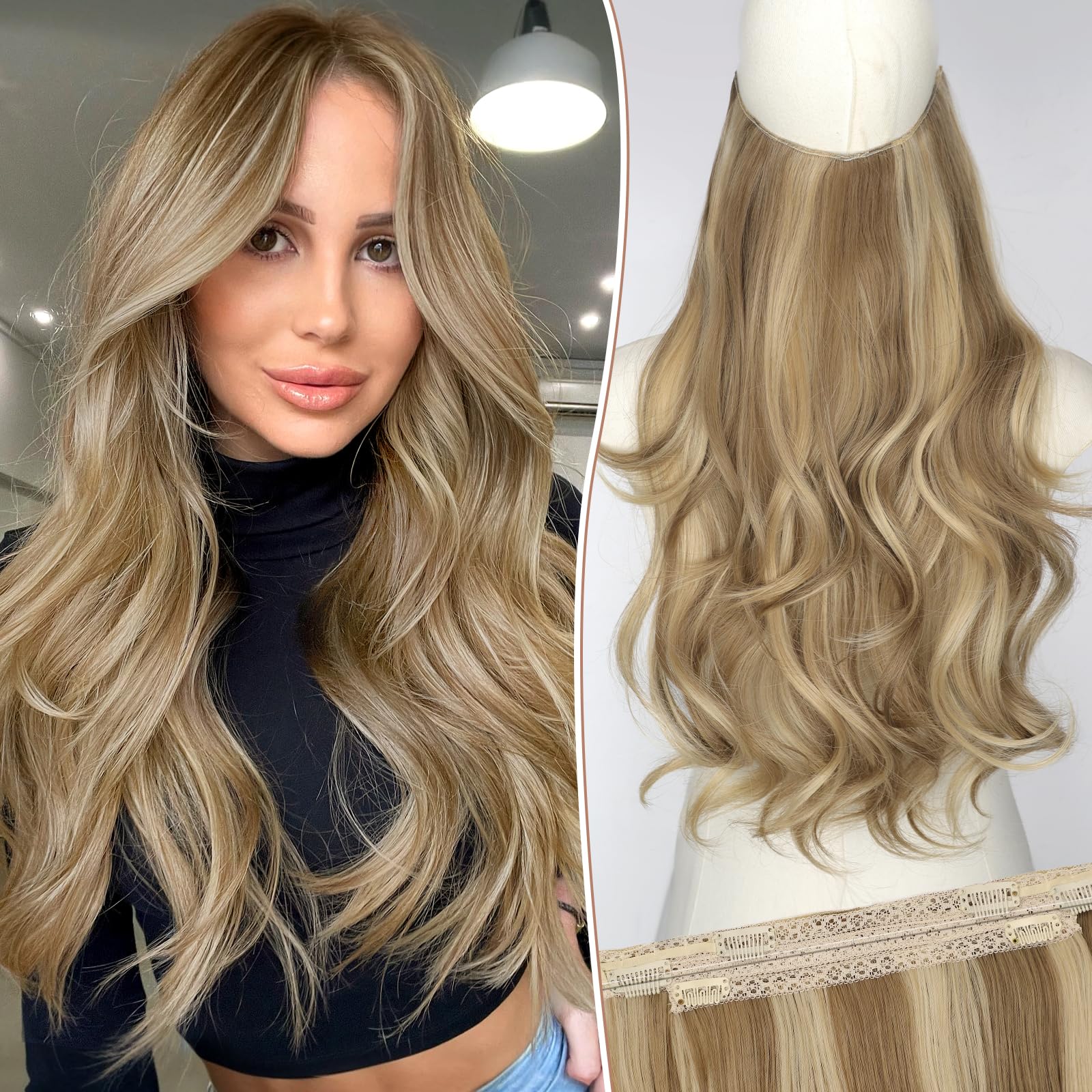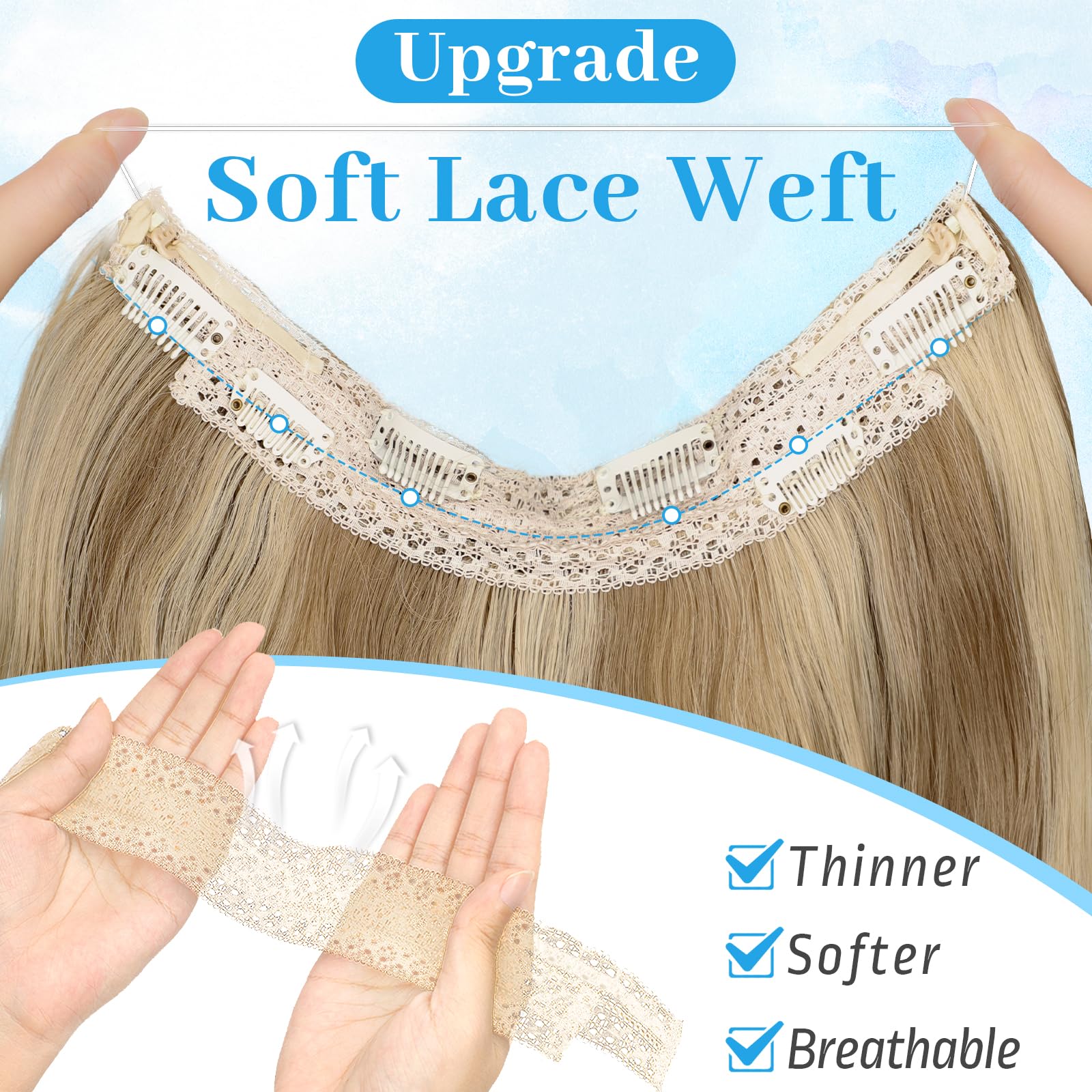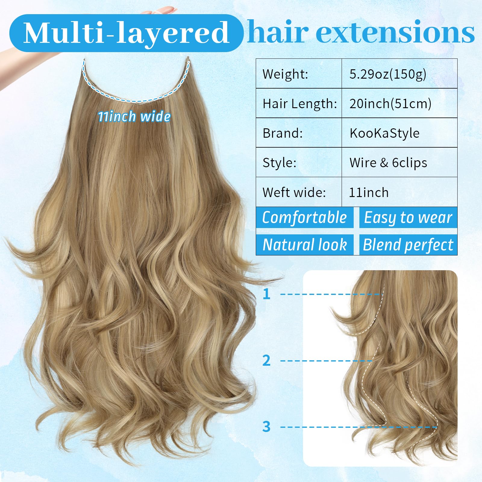 【Get Layered Hair In Seconds】 Invisible wire hair extensions is the easiest and quickest tool for adding volume and length. Anyone can do it!KooKaStyle invisible wire hair extensions with new upgrade!Thinner&softer&Breathable double weft,lighter&fluffier Synthetic heat-resisting fiber,Make it perfectly blend with our hair and create a hair salon effect at home.