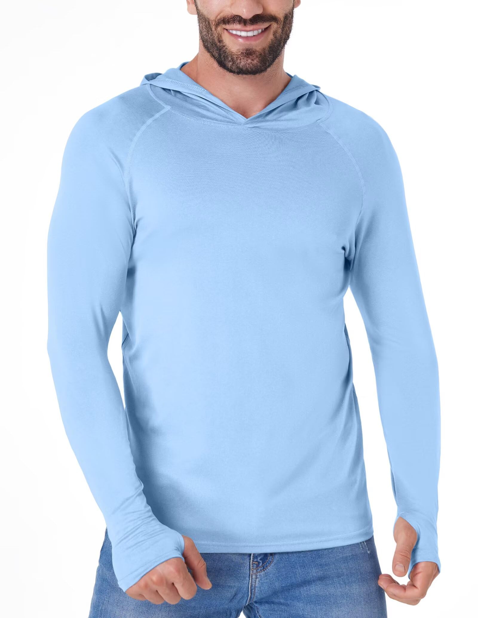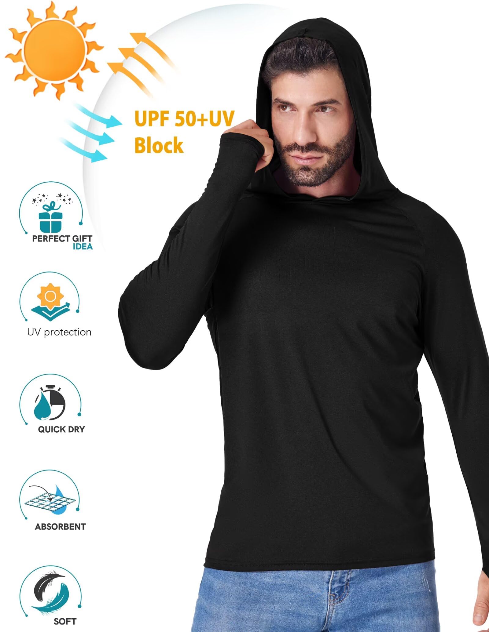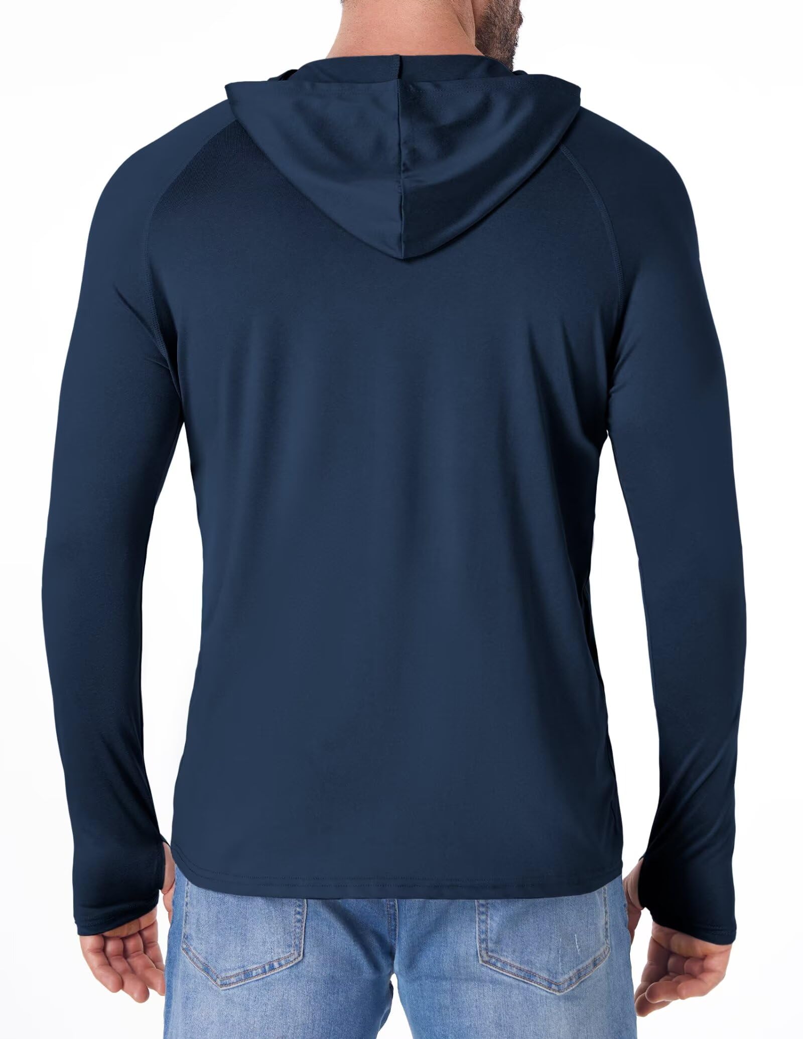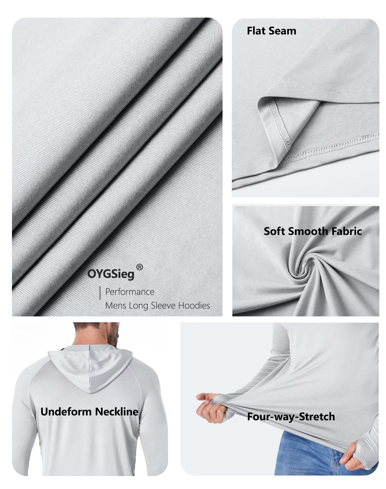 Stylish Design: These mens long sleeve fishing sun shirts with a hoodie helps protect your neck from sun burn, while the thumb hole fix the sleeves better and provide more sun protection
