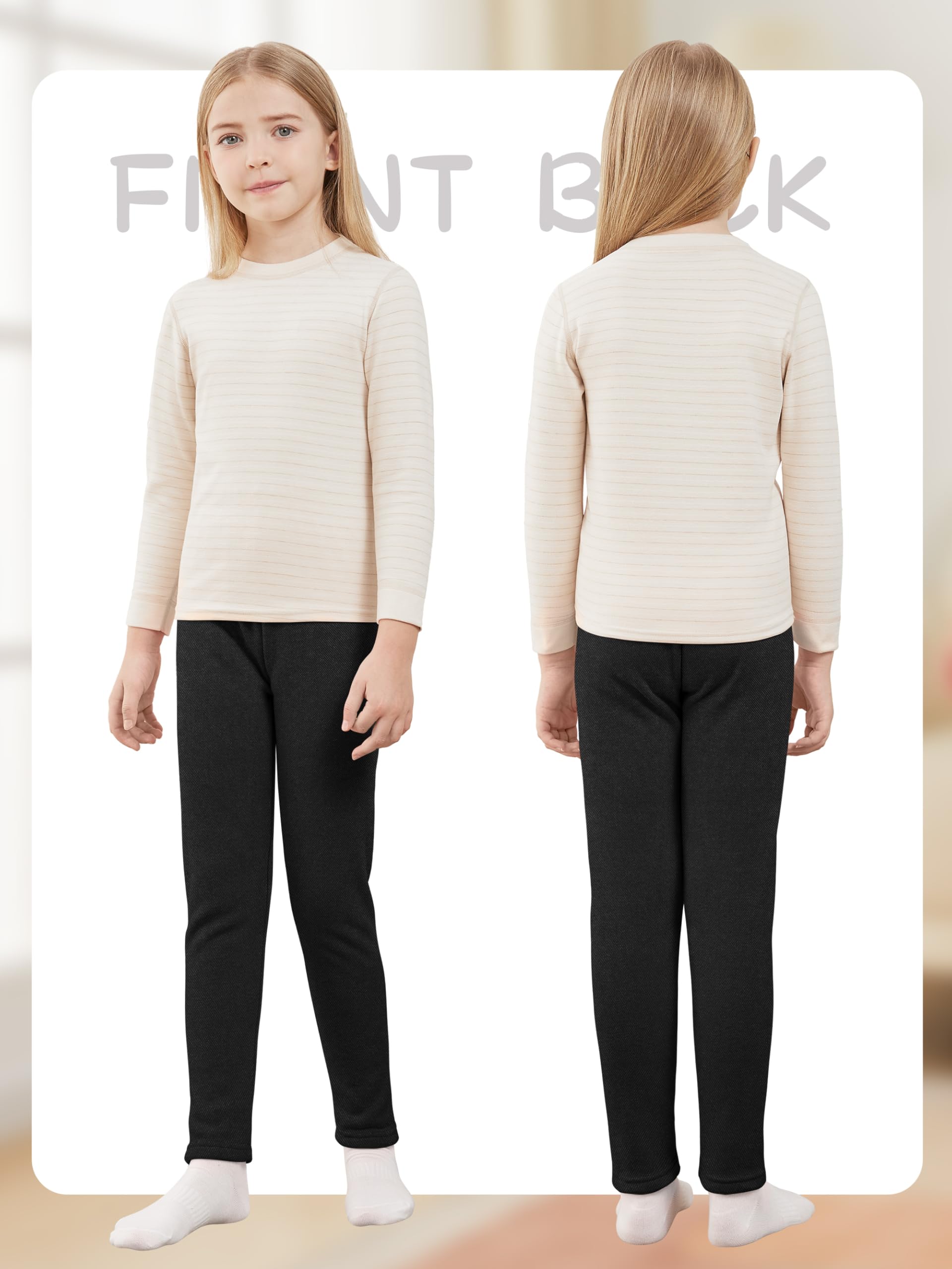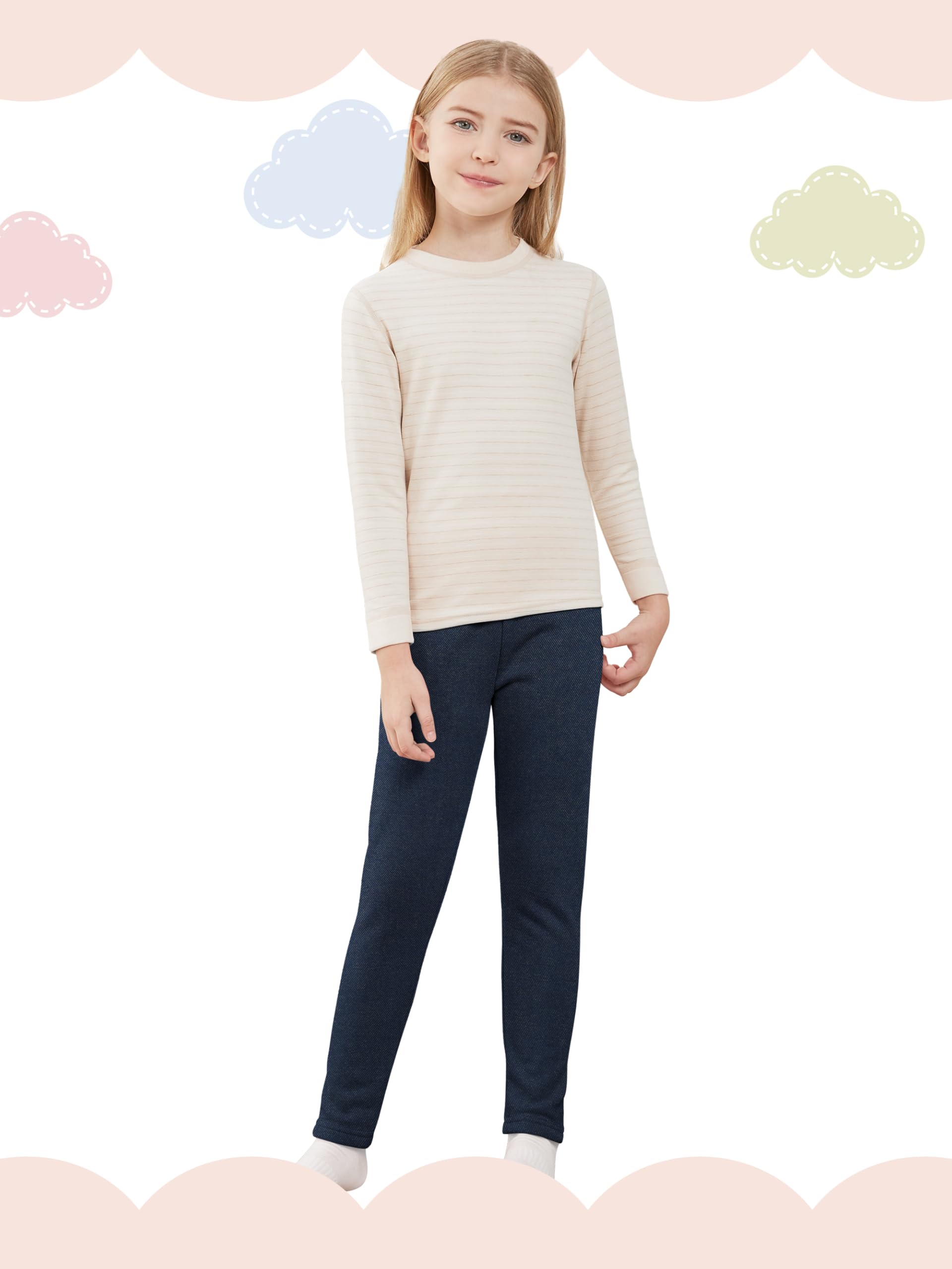 FLEECE LINED LEGGINGS: The outer layer of these warm leggings for girls is made of pure cotton and they are lined with fleece, making them elastic, soft, comfortable, and with excellent warmth.
