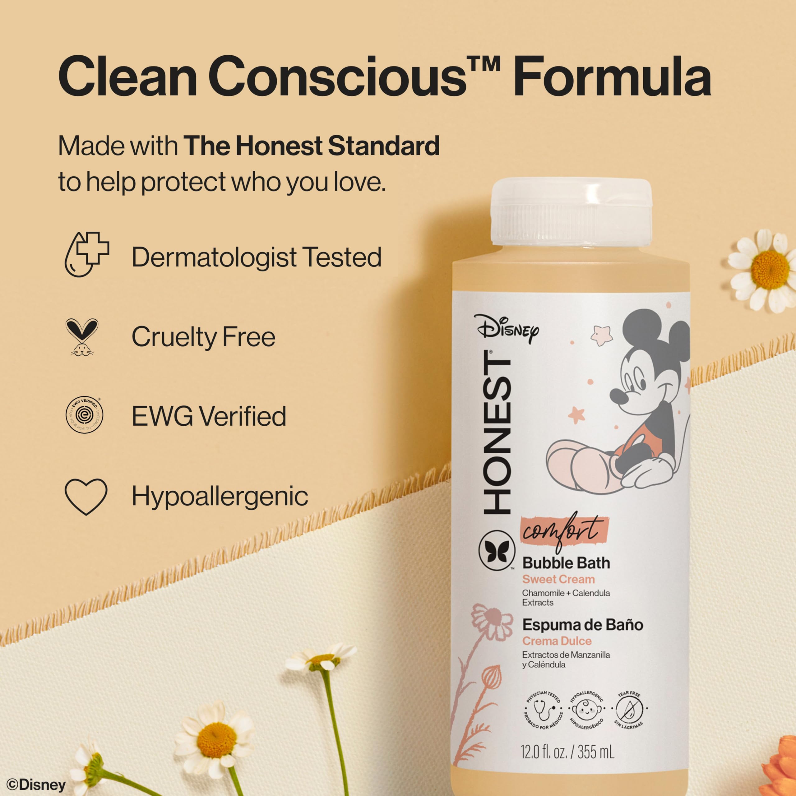 The Honest Company Foaming Bubble Bath | Gentle Enough for Baby | Dermatologist Tested, Tear-Free, Hypoallergenic | Disney’s Mickey Mouse Comfort Sweet Cream, 12 fl oz