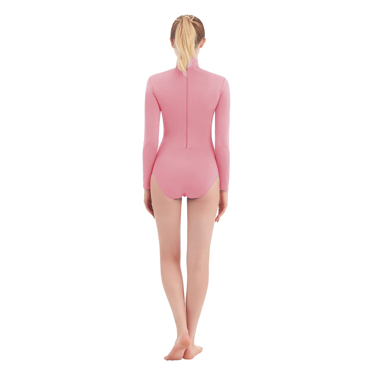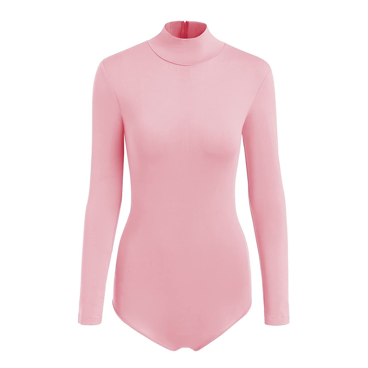 Ideal pink long sleeve bodysuit for women engaged in dance, gymnastics, yoga, cheerleading, figure skating, or relaxing casual activities, combining functionality, fashion, and daily comfort seamlessly.