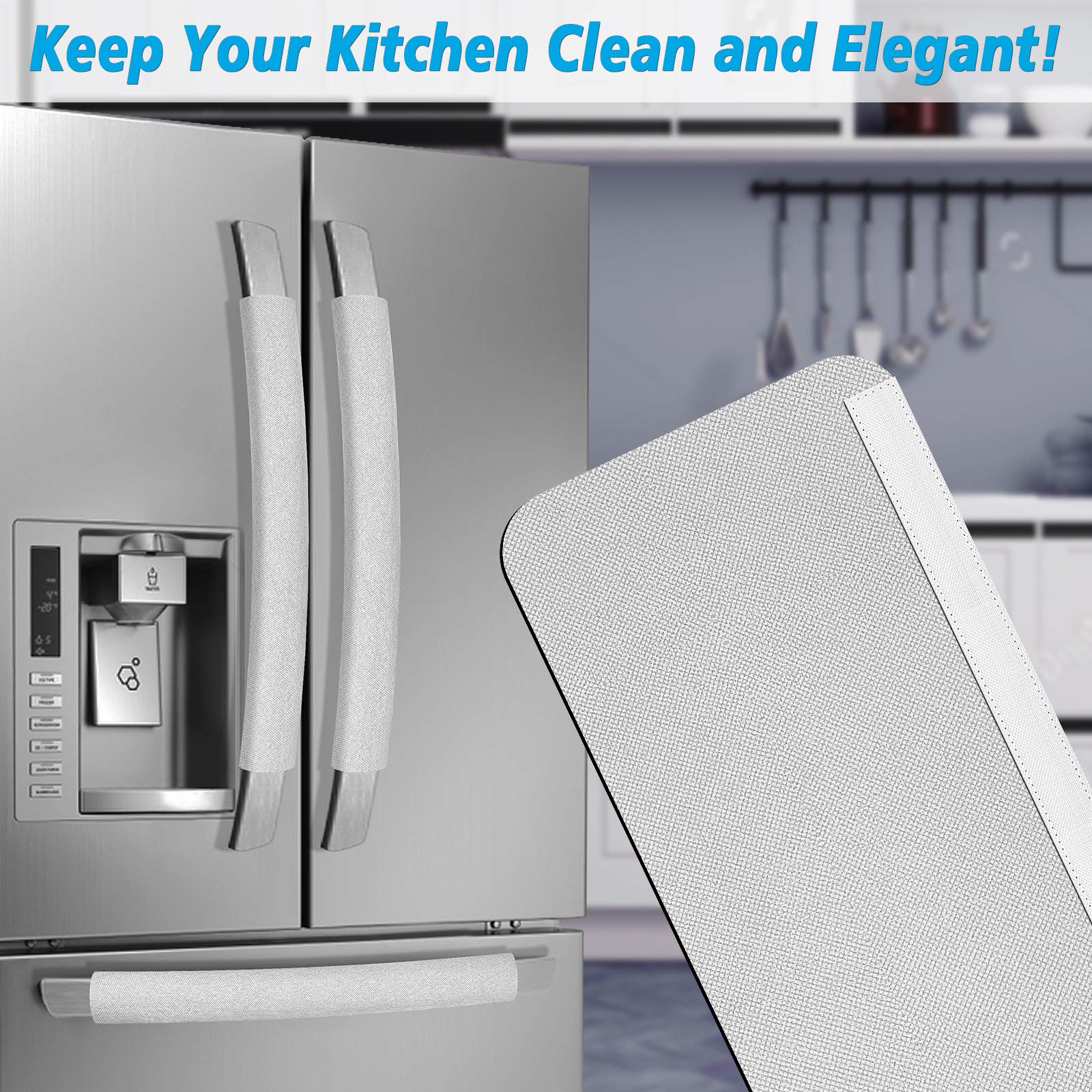 PERFECT FITTING: 5 pieces in total, 3 for fridge handles (14.5 inches in length) and 2 for microwave oven handles (8 inches and 6.3 inches in length) universal width, fits all width and thicknesses of door handles. For smaller handles, extra material can be trimmed off!