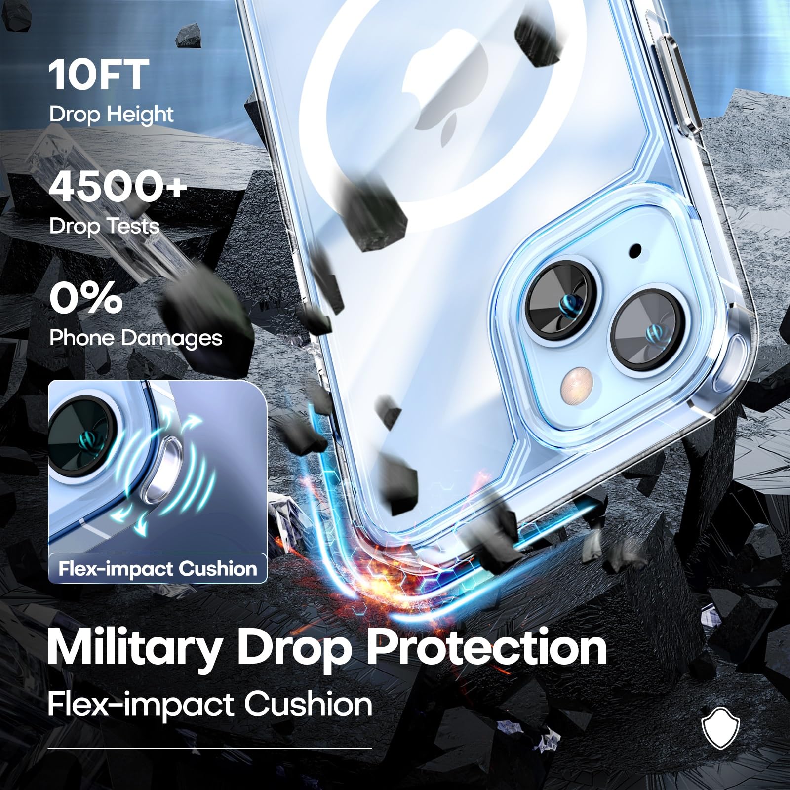 【Strong Magnetic Power】The built-in super N52 magnets in the TAURI for iPhone 14 case can deliver unmatched magnetic force. It outperforms bare devices and official protective cases with a 200% stronger adhesion, ensuring a lightning-fast and secure 15W charging speed. It's fully compatible for all Mag-Safe accessories, including wireless chargers, leather wallets, battery packs, and car mounts