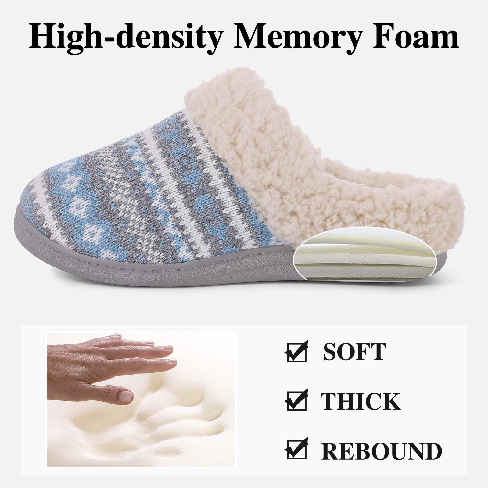 𝐂𝐥𝐚𝐬𝐬𝐢𝐜 𝐖𝐢𝐧𝐭𝐞𝐫 𝐊𝐧𝐢𝐭 𝐒𝐥𝐢𝐩𝐩𝐞𝐫𝐬: The sweater knit upper with embroidered pattern like a sweatshirt for your feet, along with cozy wool-like plush fleece lining that keep your feet warm on every cold nights. And easy slip-on design with plush collar will provie extra comfort.