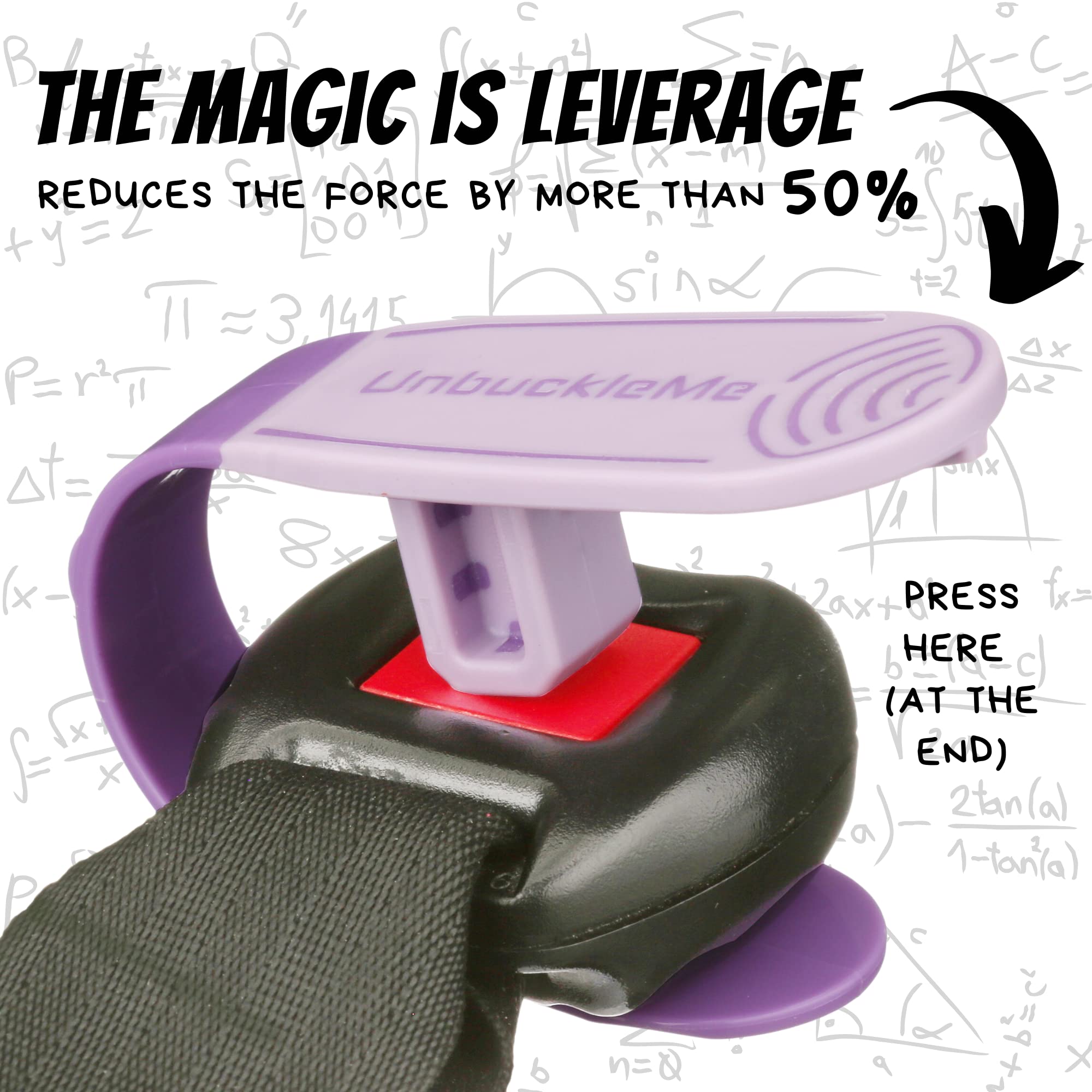 Patented lever arm reduces the force needed to unbuckle an infant or toddler 5 point harness buckle by more than 50 percent to help anyone with limited hand strength like arthritis, carpal tunnel, tendonitis, etc.