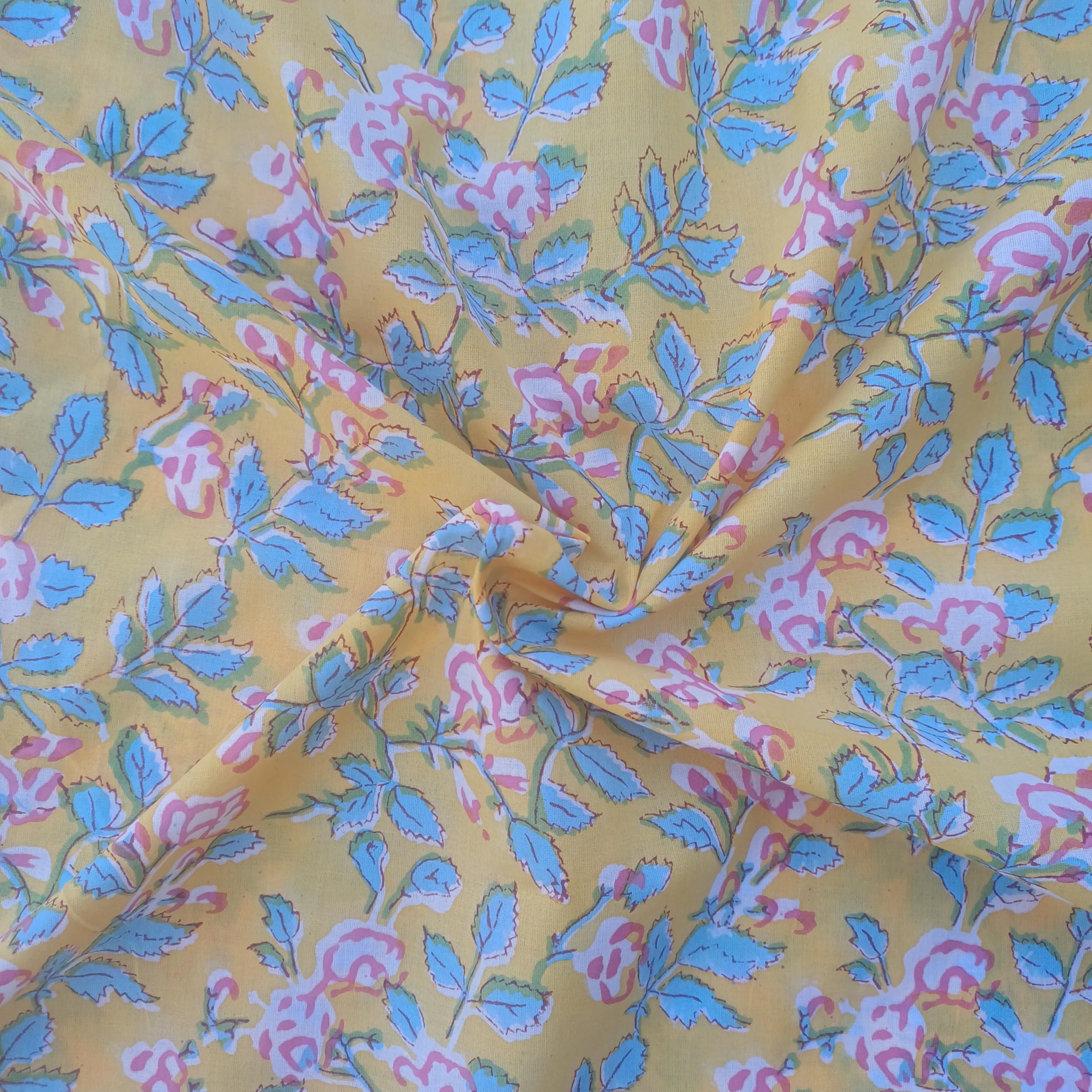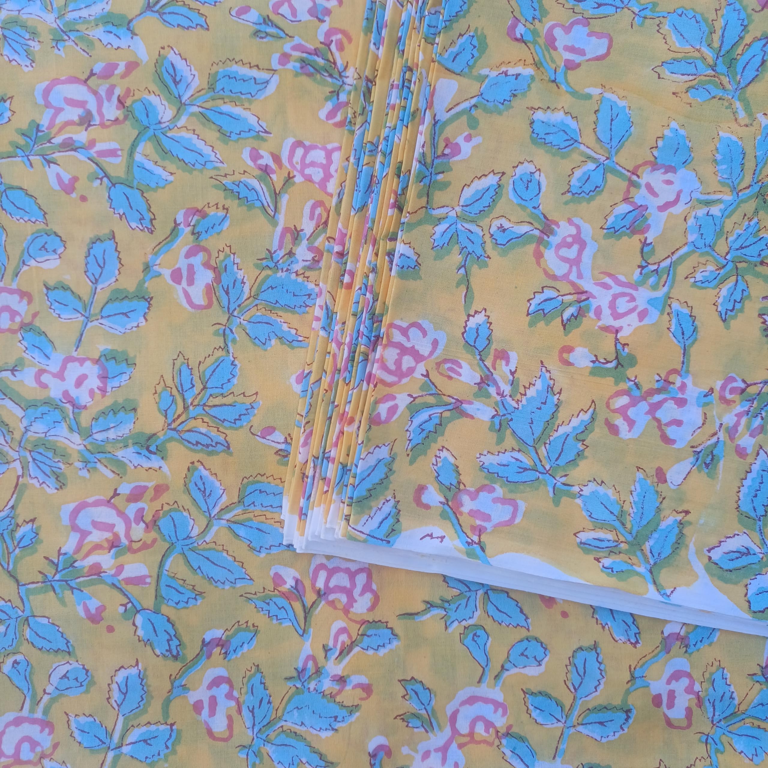 Feather soft cotton made block print fabric by yards. This fabric is hand crafted by the artisans of Rajasthan. This block print fabric by yards is available in all colors and block print floral designs. Use of vegetable dyes that are eco friendly and skin soft. You can use these in making dresses of block print fabric, napkins, dinner cloths, handkerchief, covers and wraps of block print and block print curtains and block print home decor. This Indian block print consists of floral prints that made on wooden blocks, and then dipped in dye and hand pressed on the fabric. The fabric itself is ultra light and breathable having the properties of cool nature. It is good to go with any color matching as it has plesant block printing color. Super soft and ultra light breathable block print fabric Dyed of Natural vegetable colors without any chemicals Multicolors available in block print fabric. Fabrics measured in yards, 44 inch wide Slight color variation due to hand printing COtton voile fabric, Indian block print. Dress Making, Sewing, Crafting, Napkins, Beachwears, Sarong, Pareo, Scarf/ Scarves, Kaftan, Kurtis, Tops, DIY Prjects and much more.