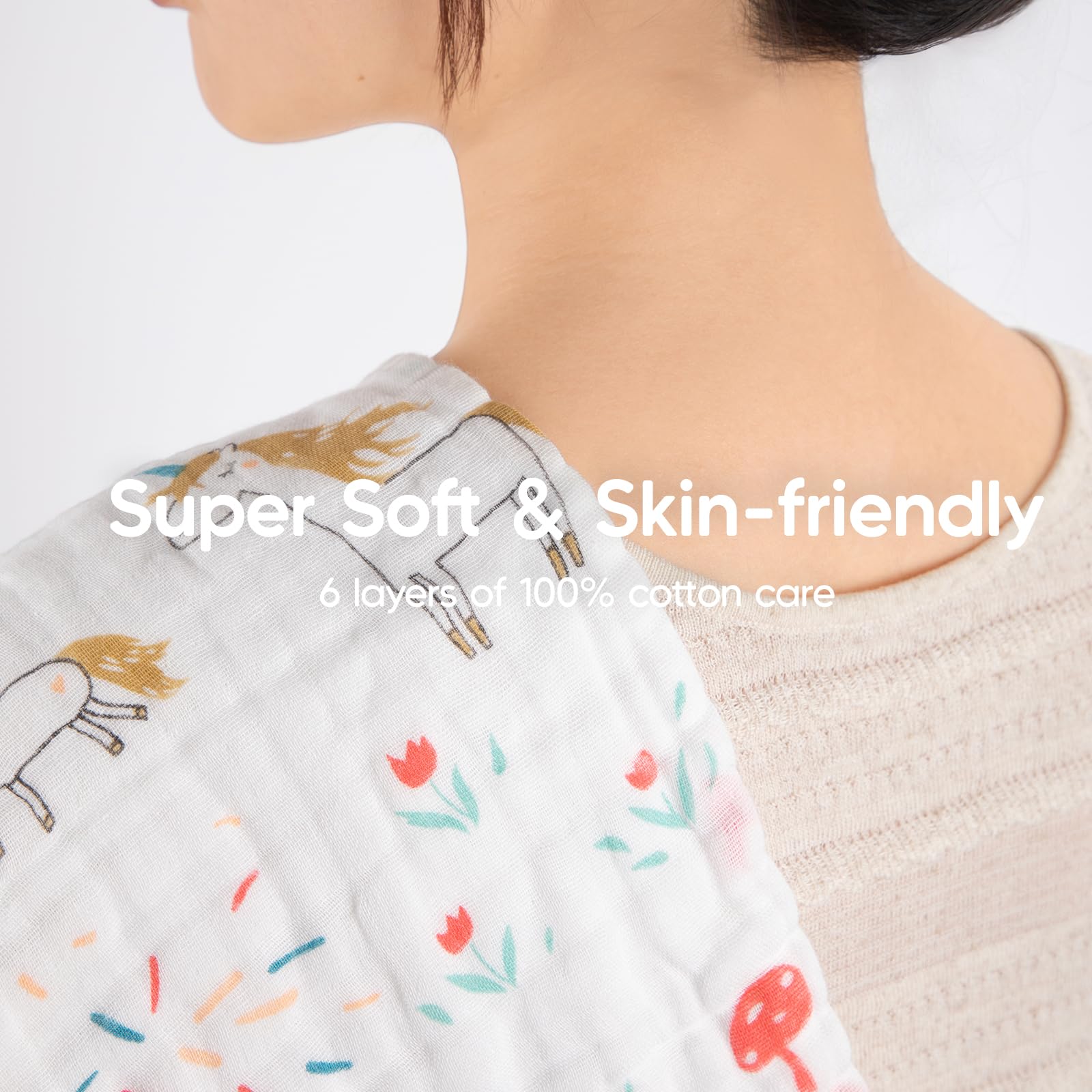 Soft material for baby skin: Made from 100% cotton muslin fabric with 6 layers of thickness for superior absorbency and softness