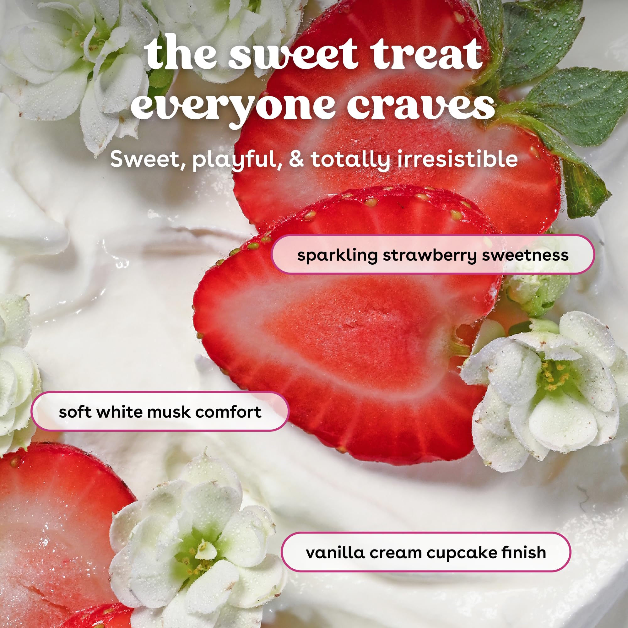 STRAWBERRY DREAM: The delightful Strawberry Dream scented body lotion contains fragrance notes of sparkling strawberry, pink sugar, and vanilla cream