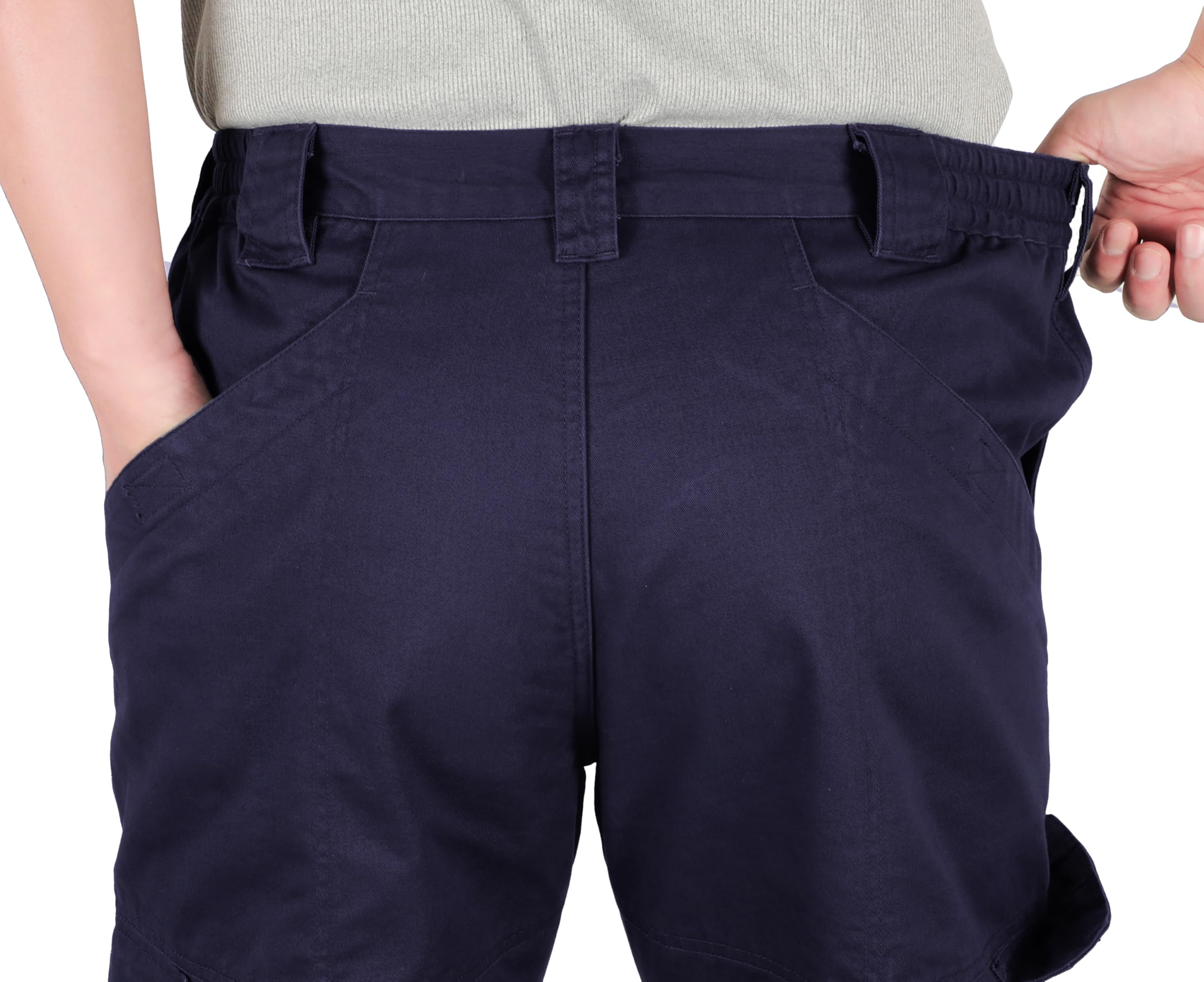 Double needle stitching on outseam. Left and right cargo pockets at the thighs with flaps to keep items secure