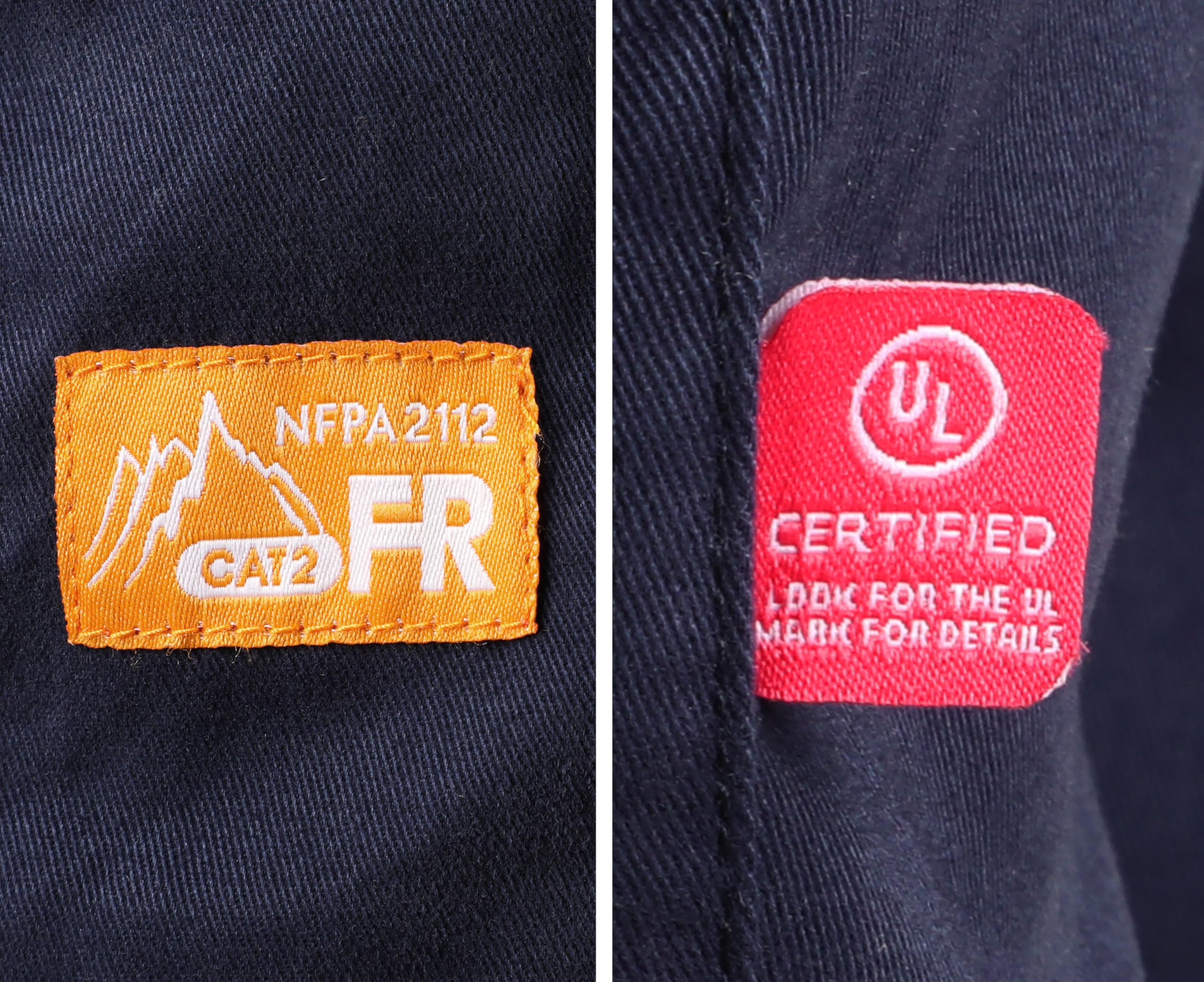 This garment meets or exceeds the standards for HRC2, Arc Rating ATPV 9.2 Calories/cm2, and the requirements of NFPA 2112 Standard on Flame Resistant Garments for Protection of Industrial Personnel Against Flash Fire, 2012 Edition.
