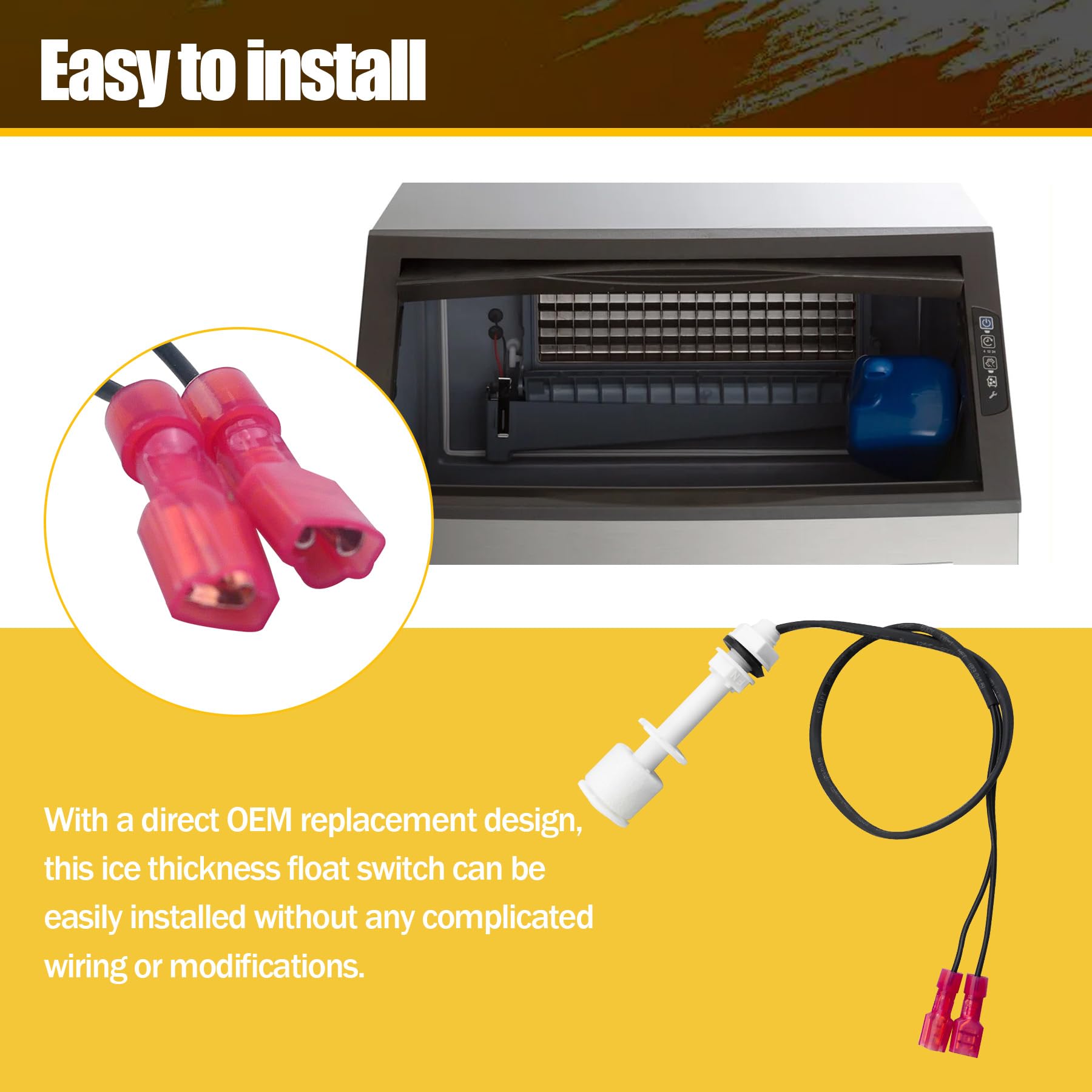 Performance: The 040001783 ice thickness float switch controls the thickness of ice by monitoring the water level in the ice maker system to achieve consistent ice making