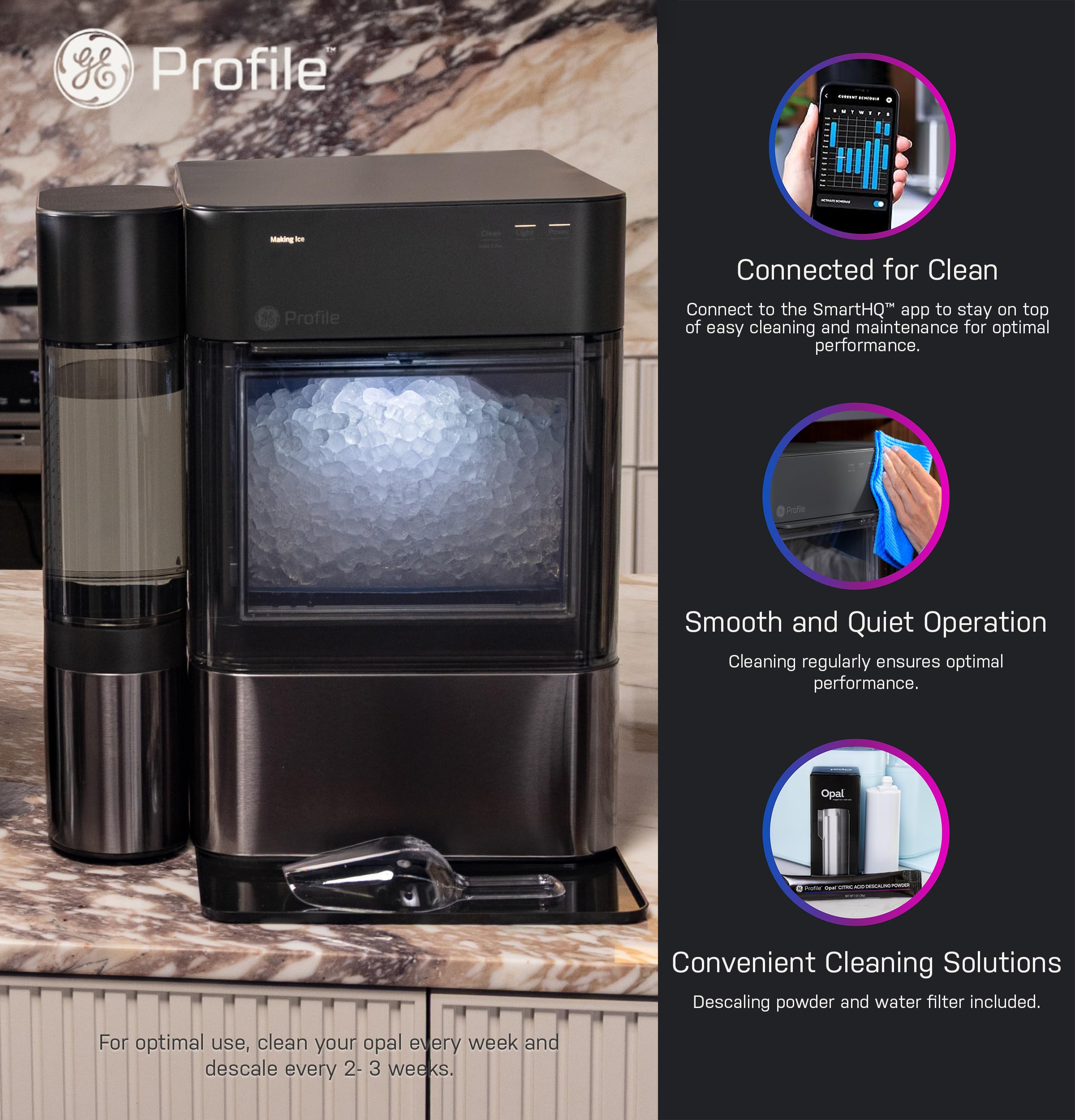 CONVENIENT CLEANING SOLUTIONS: Water filter (P4INKFILTR) and citric acid descaling powder (P4DNK6CLEAN) sold separately. The Opal water filter and citric acid descaling powder is designed for the GE Profile Opal Nugget Ice Maker to provide fresh-tasting ice every time.