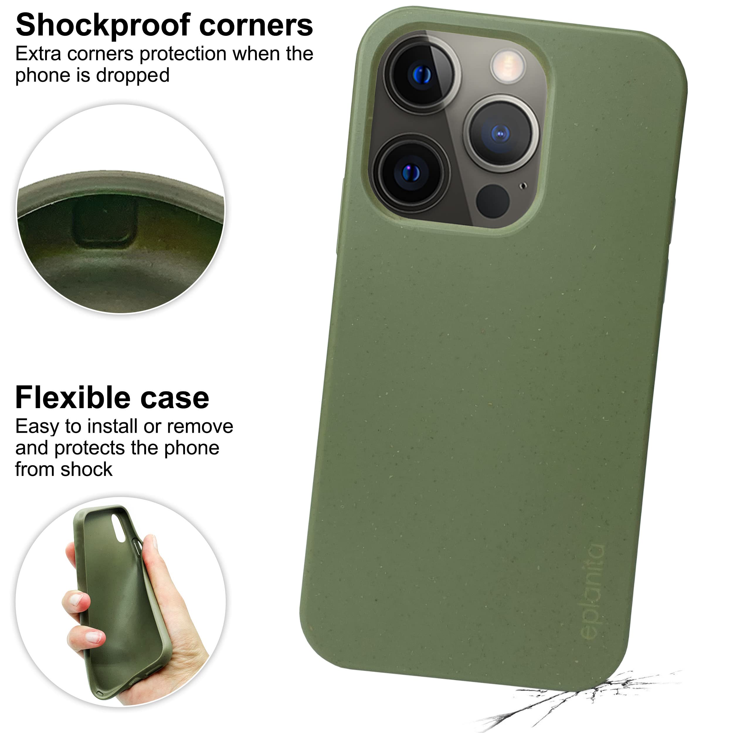 🌍 PROTECT YOUR PHONE AND THE PLANET: Mobile phone case by eplanita for iPhone 15 Pro is made from wheat straw and soft TPU. This combination makes the cell phone case kinder to the environment.