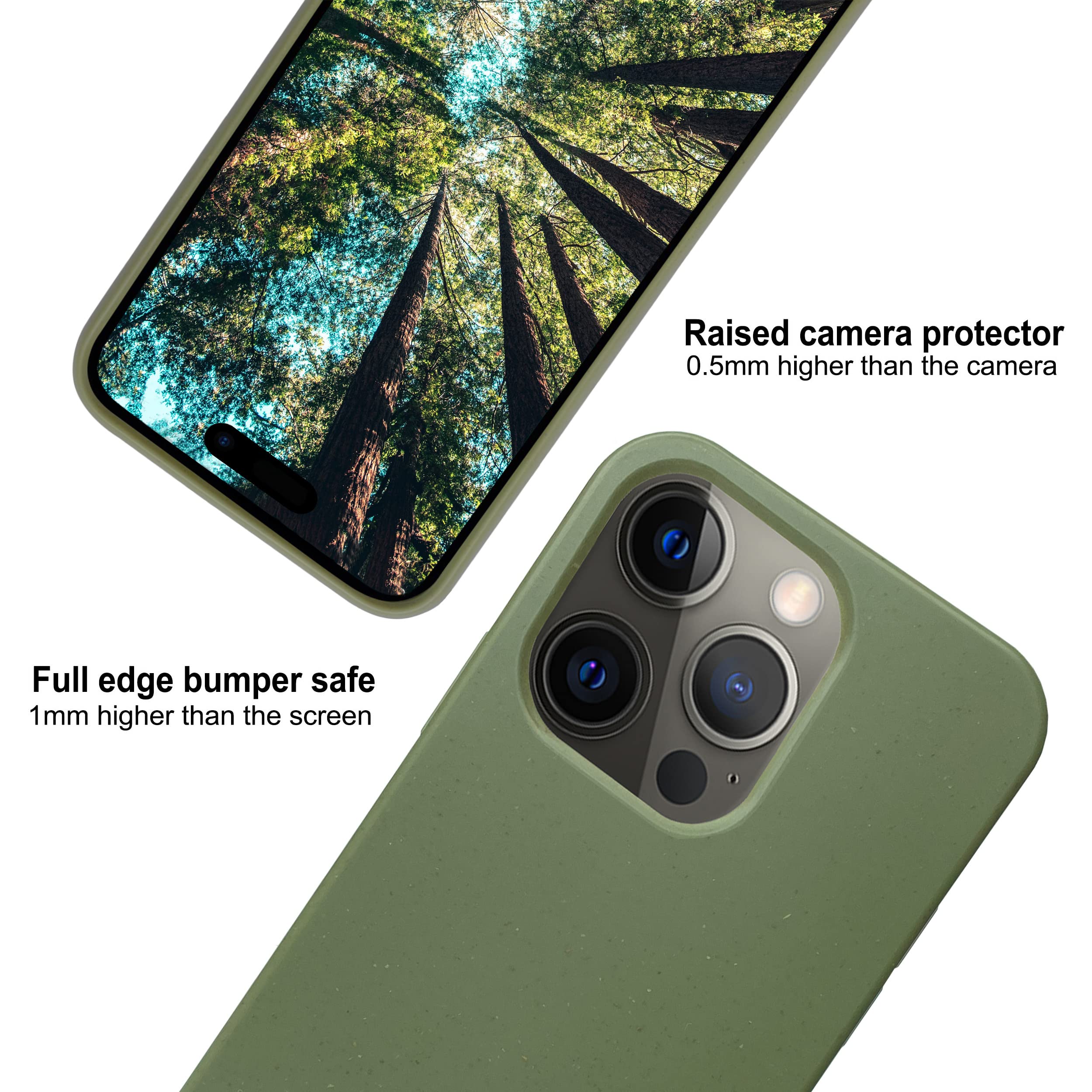 🛡️ FULL PROTECTION: Our ECO mobile case for iPhone 15 Pro has been engineered and tested to ensure resilience and durability. The shock absorbing qualities of TPU will provide good shock proofing and anti-drop protection. The camera and front edges are 0.5 mm and 1.0 mm higher respectively, ensuring the iPhone's camera and screen are protected.