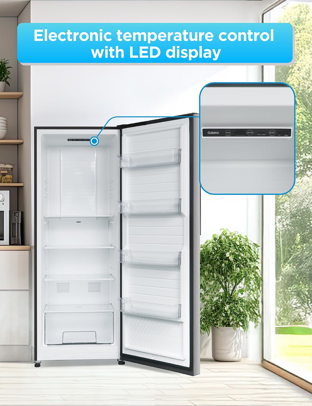 Electronic Temperature Control: Manage your standing freezer settings with ease using the control panel, ensuring precise temperature control in both freezer and vertical refrigerator modes
