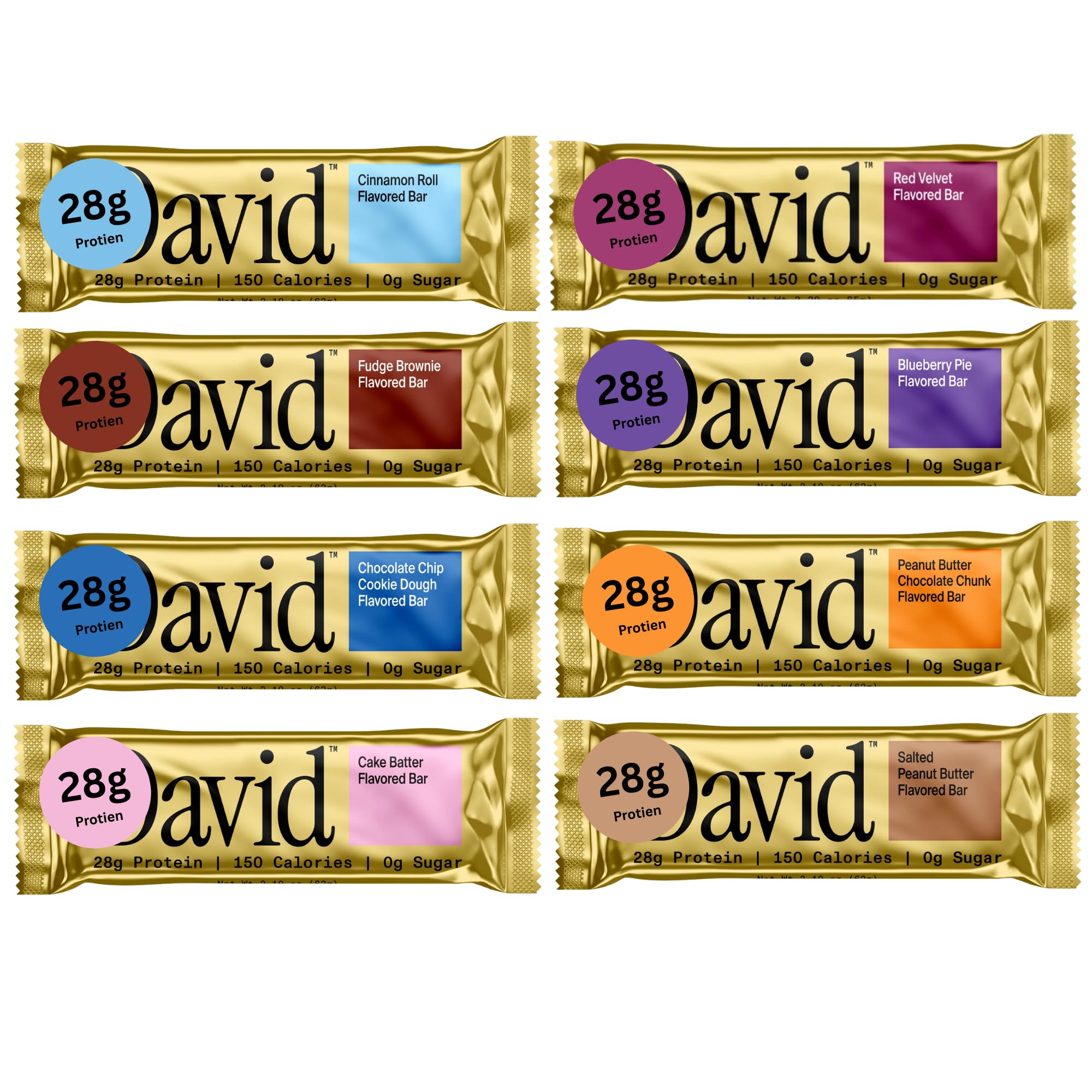 GLUTEN FREE BARS – David protein bars are designed for performance, delivering 28g of high-quality protein with 0g of sugar and 150 calories. Whether you’re fueling up pre-workout, recovering post-gym, or need a quick on-the-go snack, these gluten free bars help you stay on track with your macros - without compromising on taste.