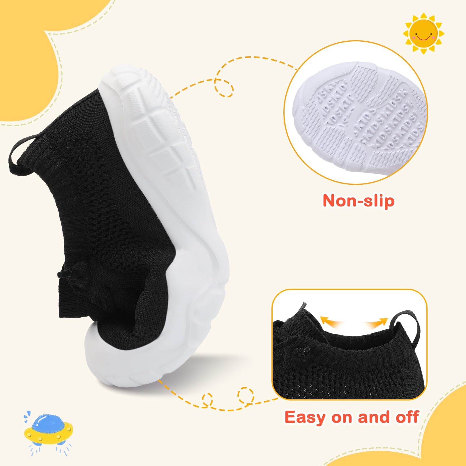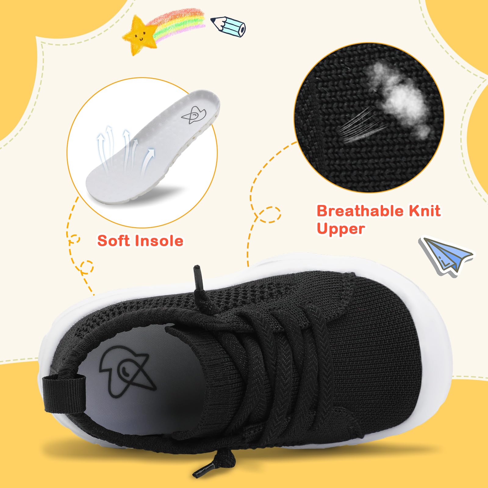 Breathable and Comfortable: The superfine knit uppers of these toddler shoes give you good breathability and dry quickly. Keep kid's feet dry and comfortable even during exercise. Suitable for wear in any season.