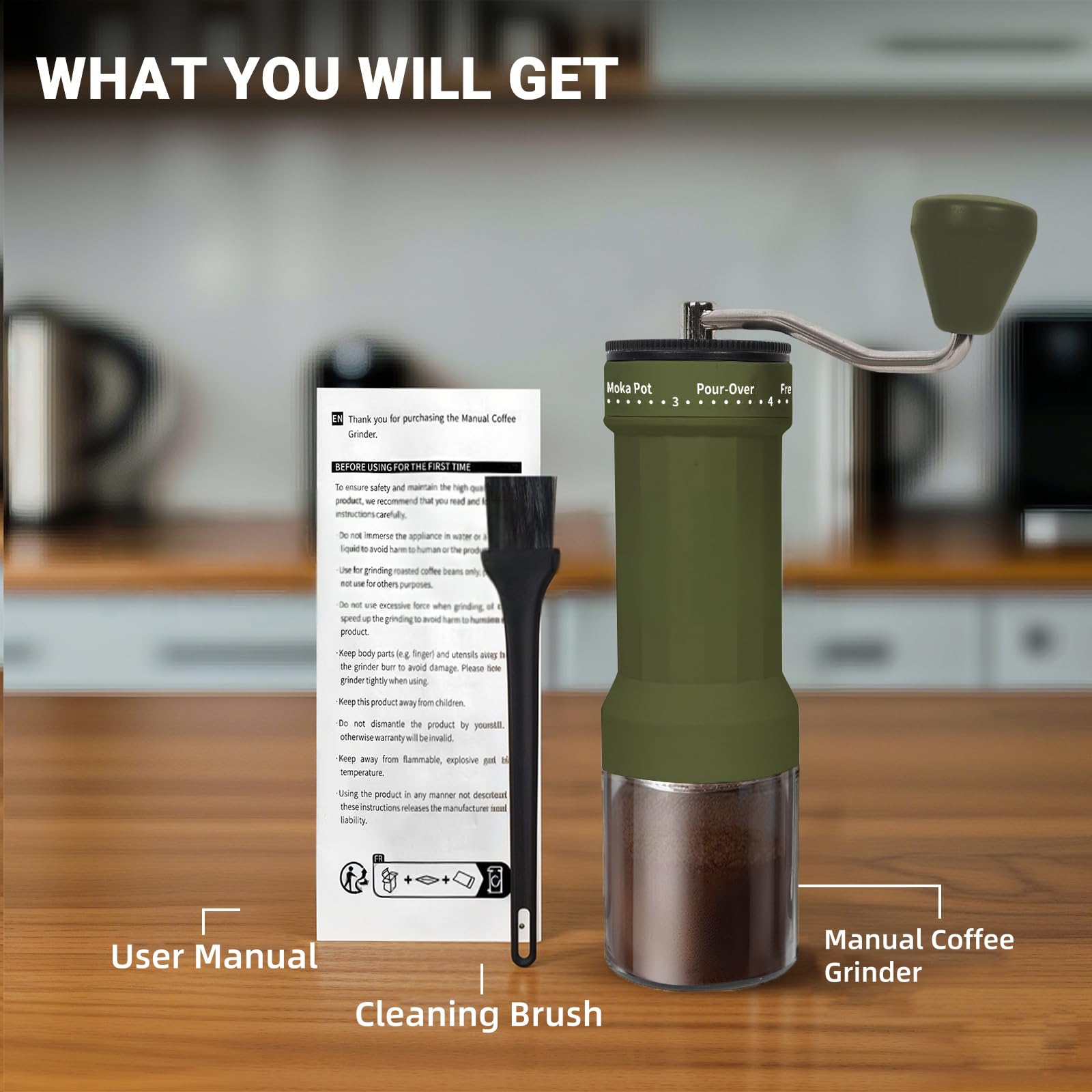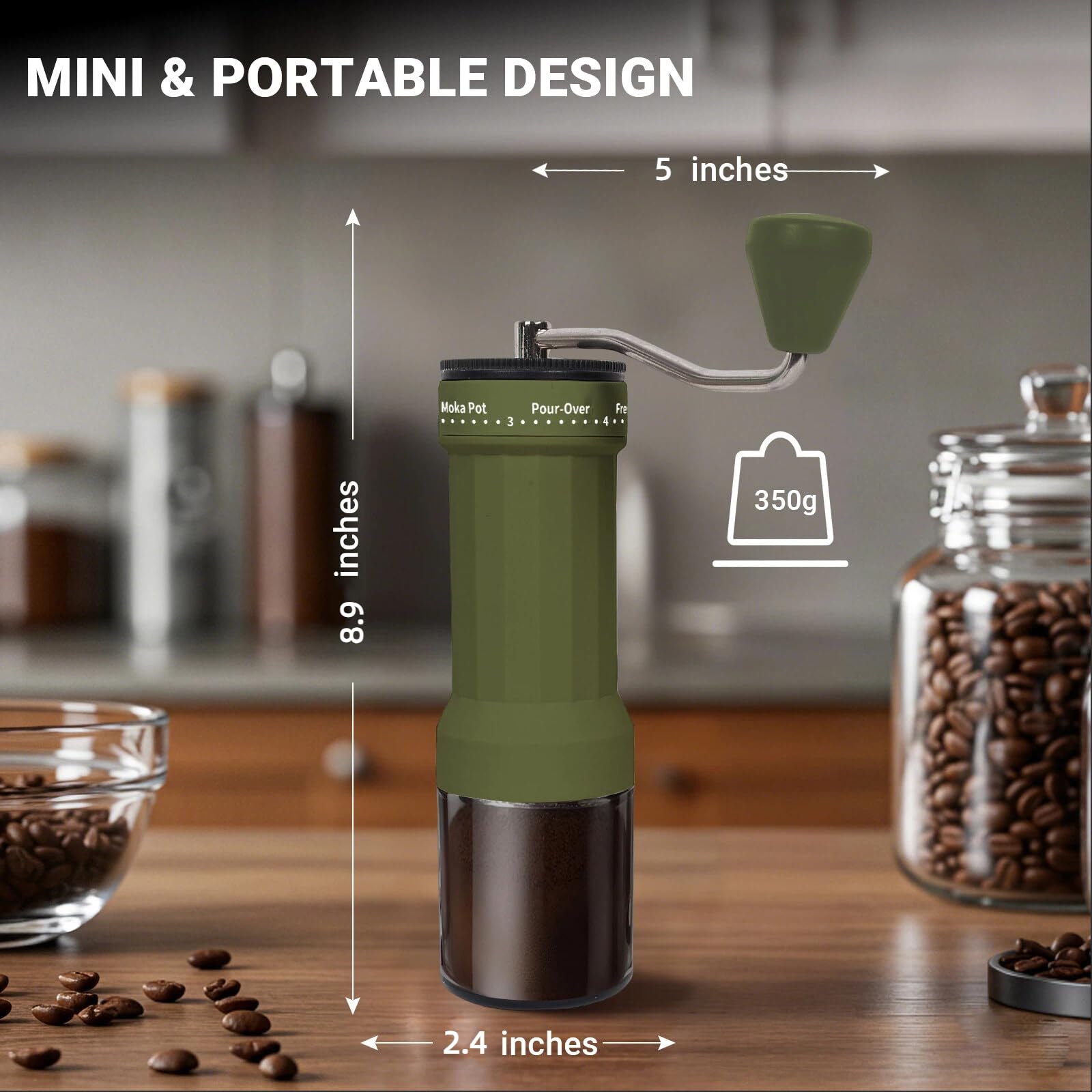 ULTRA-PORTABLE & COMPACT – Weighing just 350g (12.35 oz) and sized at 5x2.4x8.9 inches, this handheld grinder fits effortlessly in your backpack, suitcase, or desk drawer. Take it camping, traveling, or to the office—freshly ground coffee is now always within reach. Includes an easy-to-follow user guide for hassle-free setup.