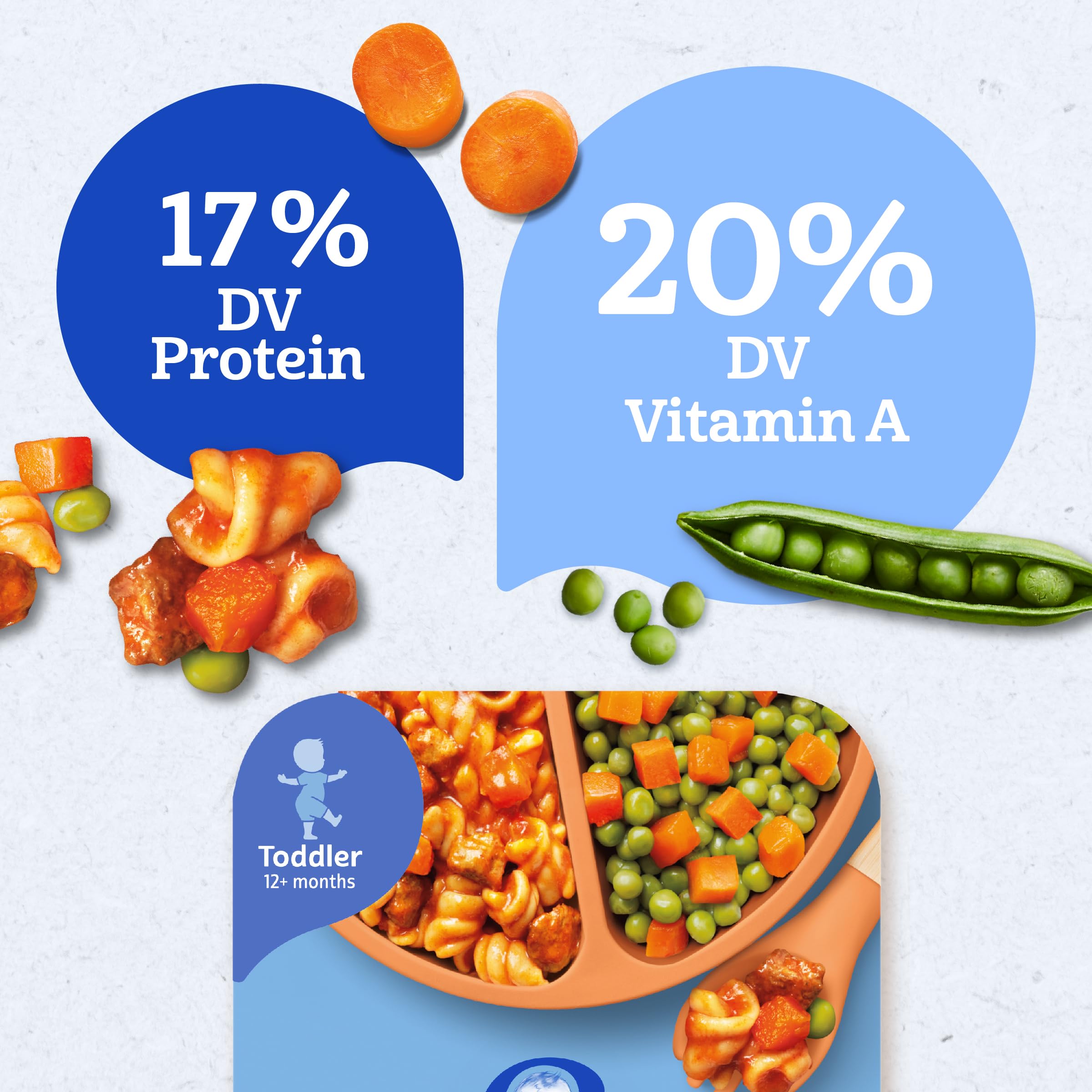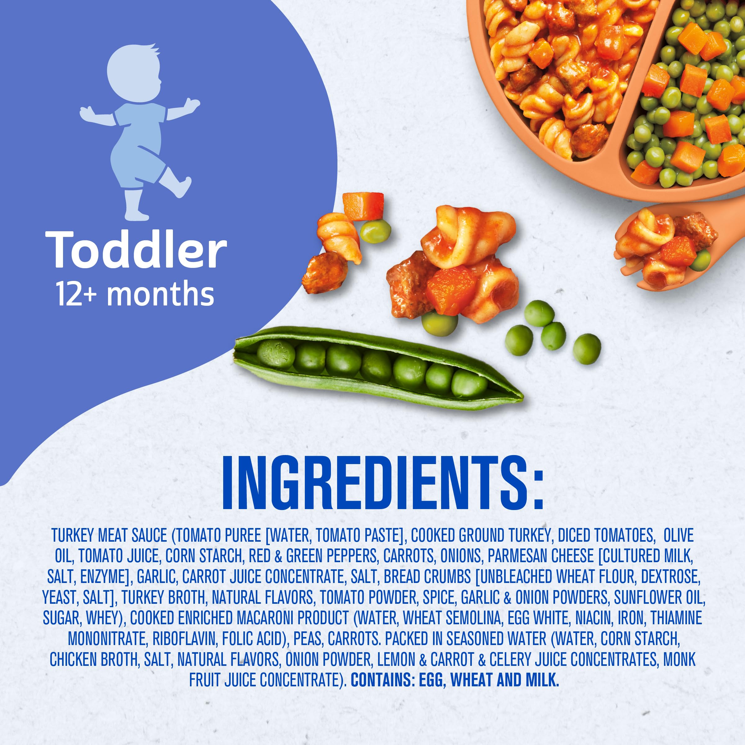 Serve wholesome nutrition with none of the hassle with Gerber Lil Entrees Spiral Pasta in Turkey Meat Sauce with Green and Yellow Beans. This Gerber toddler food starts with pasta ingredients that get sealed up tight and cooked slowly for just the right amount of time for a taste and texture your little one will love. Made with love, not preservatives, these toddler meals are specially designed to meet your toddler's developmental needs with a full serving of vegetables. This toddler baby food is an excellent vitamin A and protein source, providing 5 grams of protein per serving. Gerber meals offer a quick option while letting your toddler practice self feeding. Delicious and convenient, this Gerber pasta comes in packaging that's made without BPA. Just heat and serve for a quick toddler snack or meal. Cover and refrigerate after opening and discard unused portion after 2 days.
