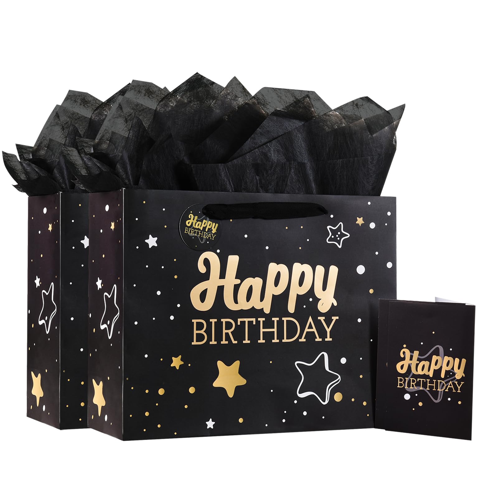 【Original Design:】The bag pattern is original and aesthetically unique. A black background with star elements creates a starry sky effect, and the phrase "Happy BIRTHDAY" is printed on the bag, making it perfect for birthday parties. It's a great choice for yourself or to gift to family, friends, or colleagues.