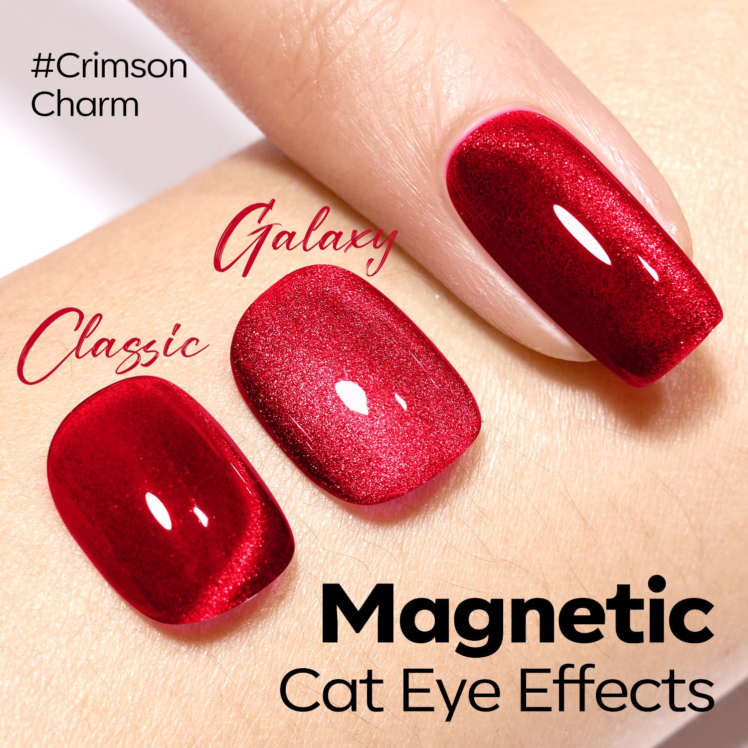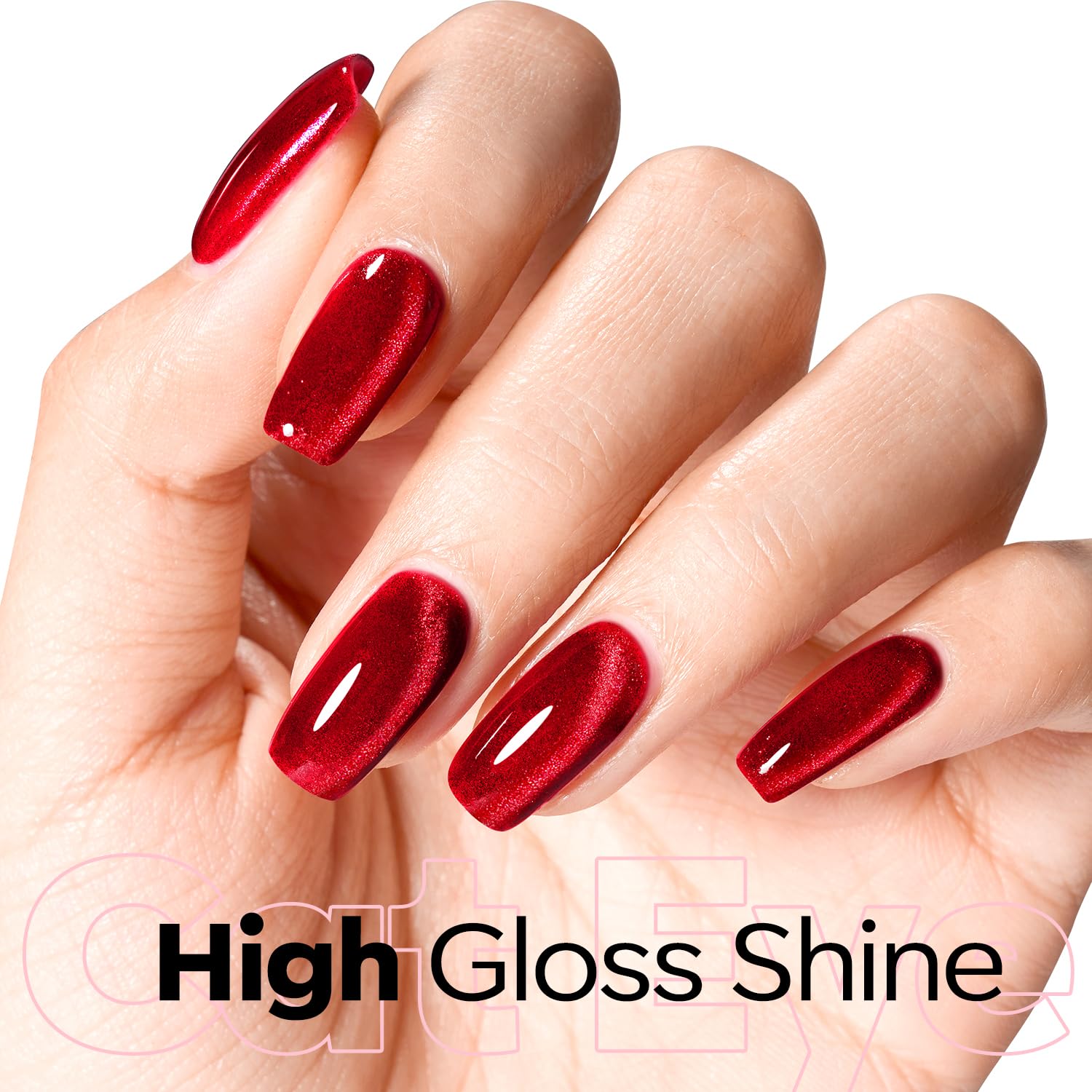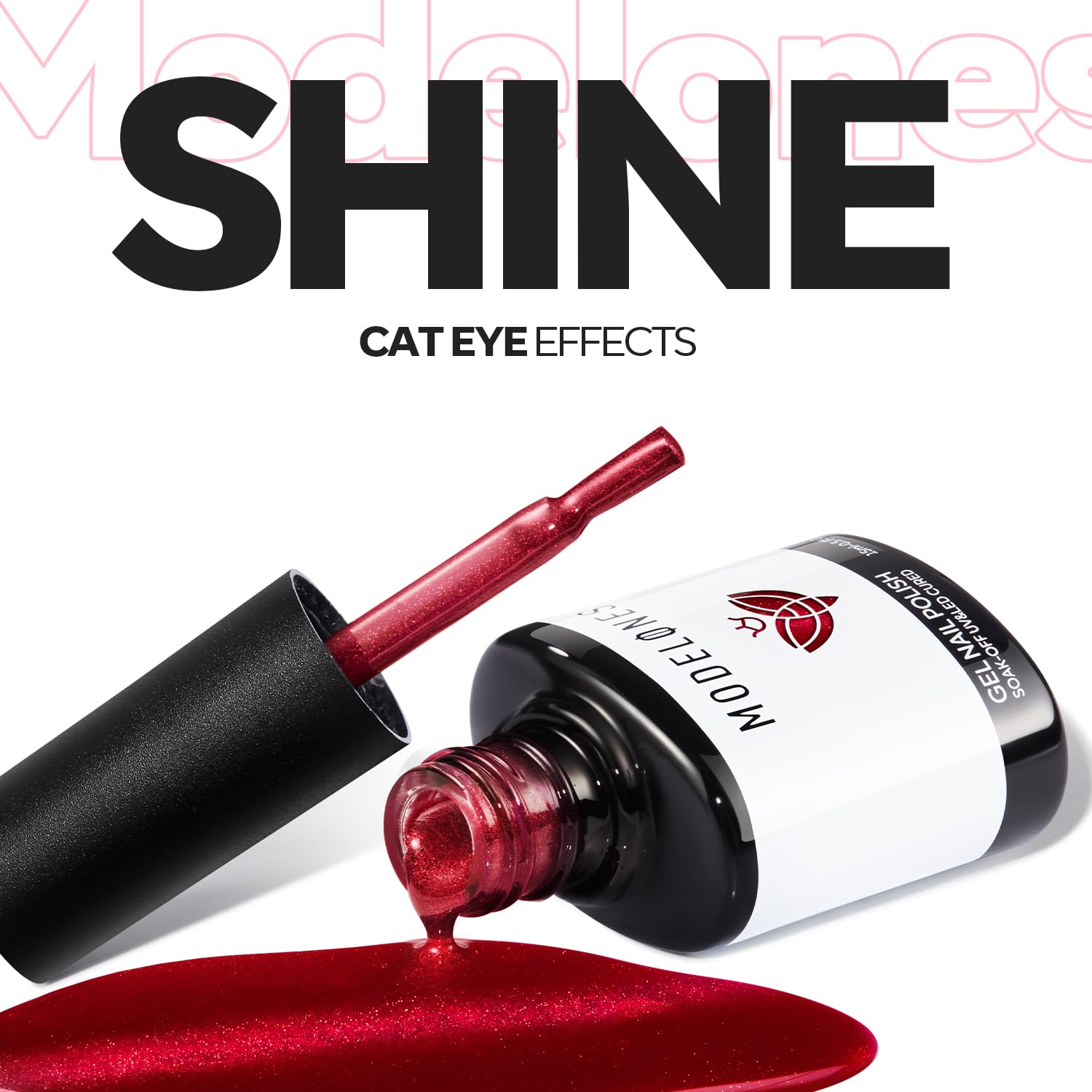 Dynamic Shimmer Ruby Red Cat Eye Effect: Hold the magnet 3-5mm above the surface for 5-10 s to achieve your desired effect! Each Modelones 9D cat eye gel polish is expertly mixed with metallic magnetic glitter powders for a shiny finish. Different angles create different visual effects