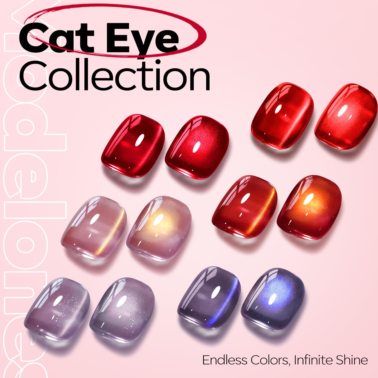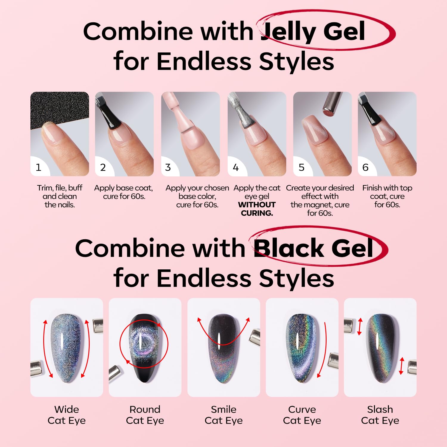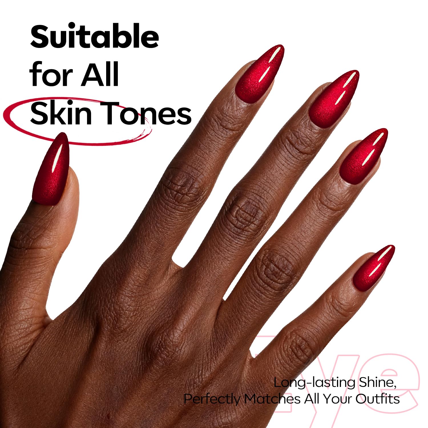 Dynamic Shimmer Ruby Red Cat Eye Effect: Hold the magnet 3-5mm above the surface for 5-10 s to achieve your desired effect! Each Modelones 9D cat eye gel polish is expertly mixed with metallic magnetic glitter powders for a shiny finish. Different angles create different visual effects