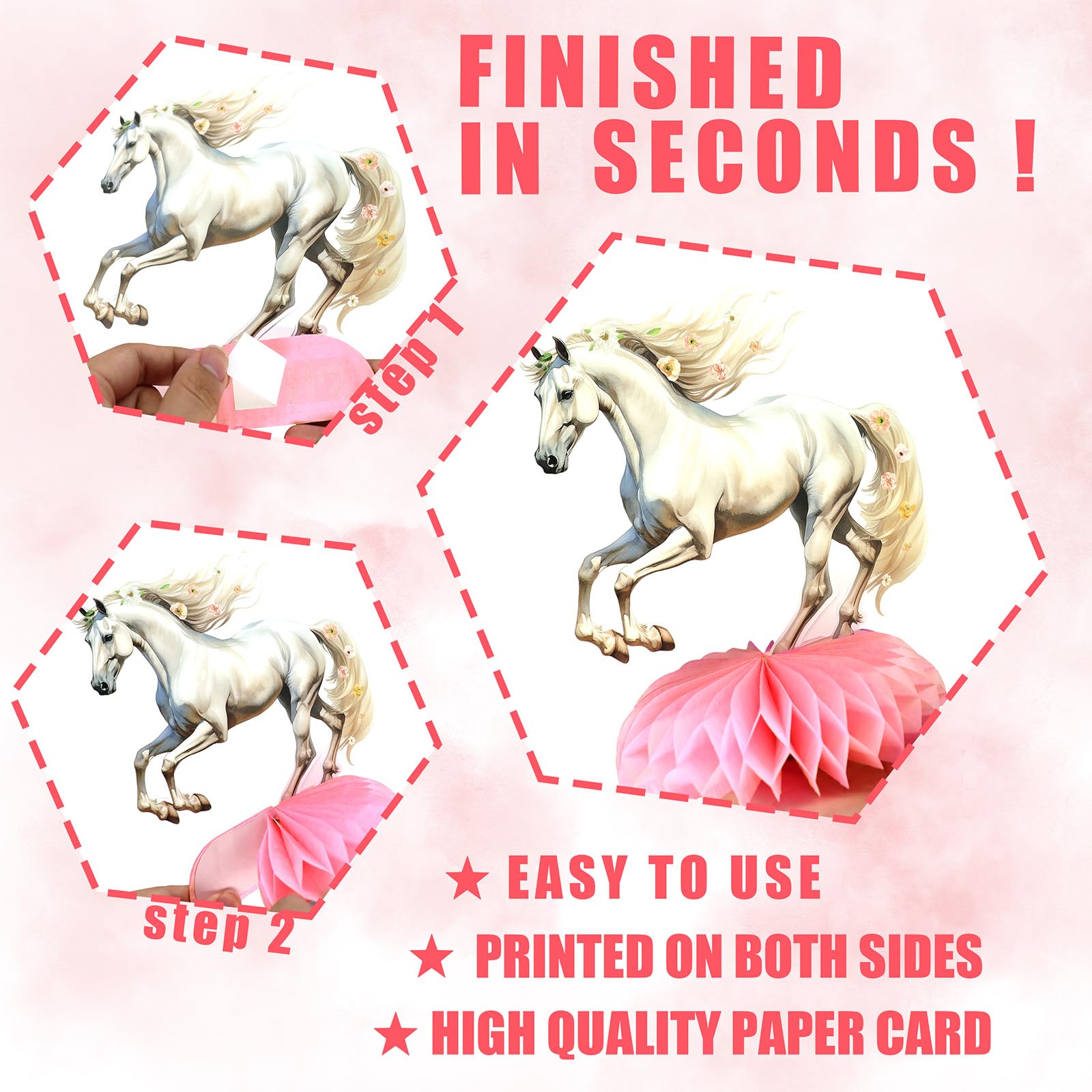 VERSATILE GIRL HORSE PARTY DECORATIONS: Perfect for festivals, creative table settings, photo props, birthdays, children's parties, family gatherings, and horse-themed events. These adorable girl horse honeycomb centerpieces add a playful and charming touch to any occasion!