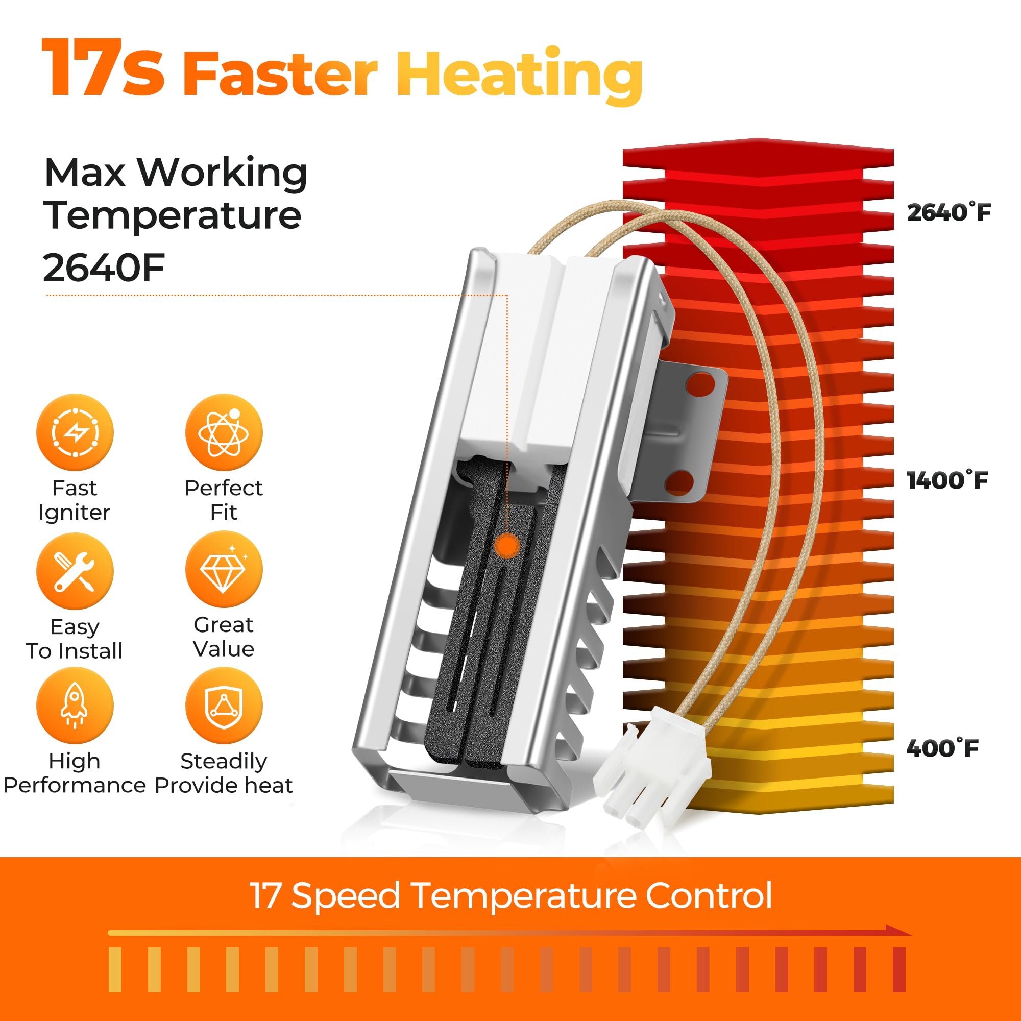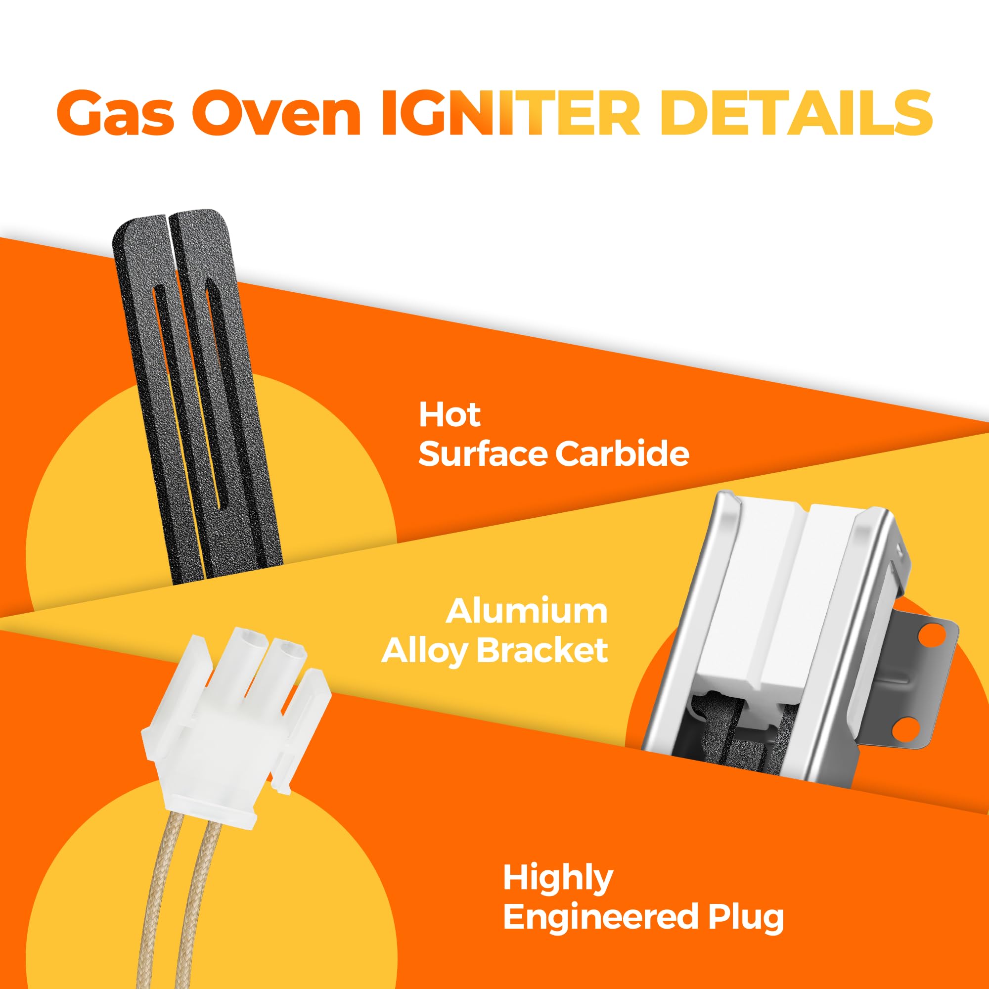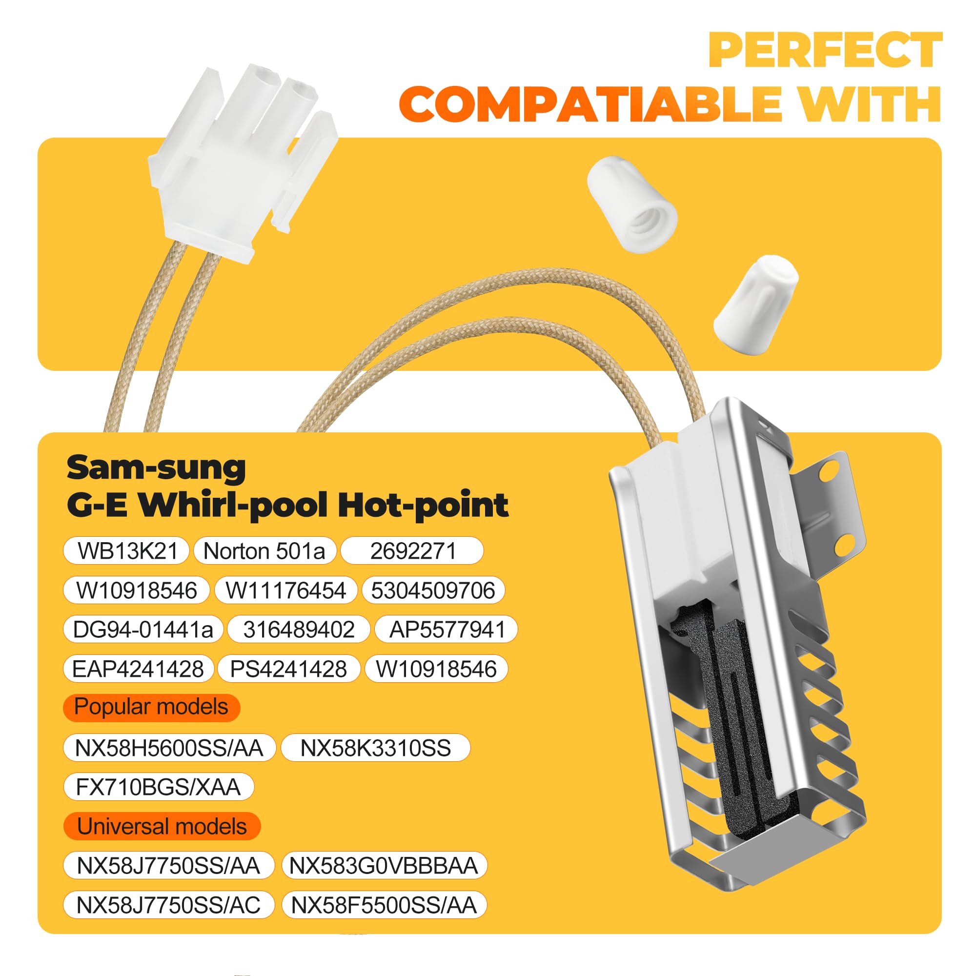 WIDE COMPATIBILITY: Our gas oven igniter fit for Samsung NX583G0VBBBAA, FX710BGS/XAA, NX58F5500SS/AA, NX58H5600SS/AA, NX58J7750SS/AA, NX58J7750SS/AC, NX58H9950WS/AA, FX710BGS/XAC, NX58F5300SS/AA, FX510BGS/XAA, NX58F5500SW/AA, NX58R5601SG/AA, NX58J7750SG/AA, NX58N9420SG/AA, NX58R4311SG/AA, NX58R9421SS/AA gas oven, etc. 🛠If you have any questions about MODEL NUMBER, please inform us any time.