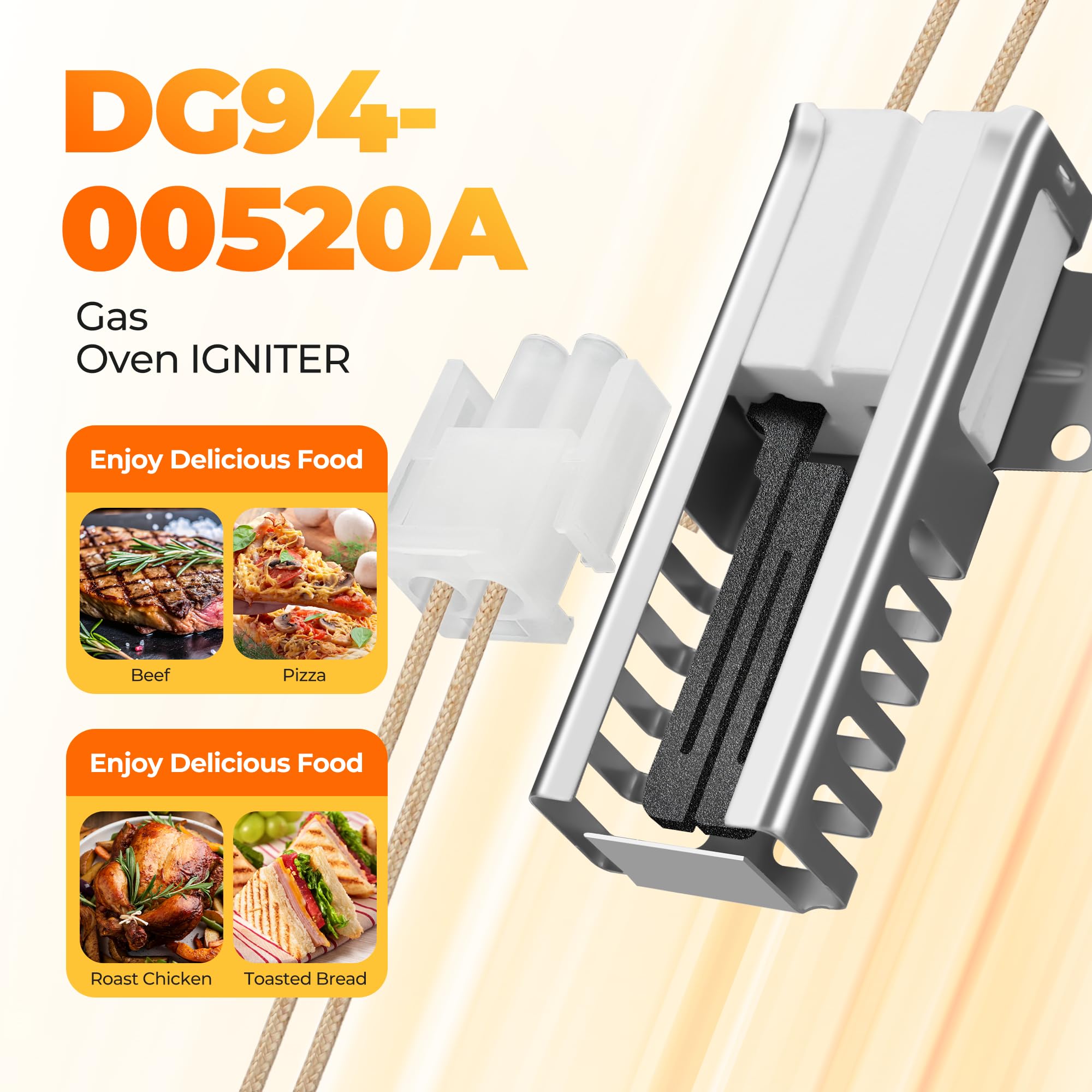PRODUCT INSTRUCTIONS: Our gas oven igniter fit for Samsung replaces DG94-00520A, 2692271, AP5577941, EAP4241428, PS4241428. The DG94-00520A oven igniter has a body length of 3.7 inch. It comes with mounting bracket and a wire connector. The oven igniter is made of premium quality material to ensure a higher heat resistance and a greater power connection. It's a wise choice to choose our oven igniter.