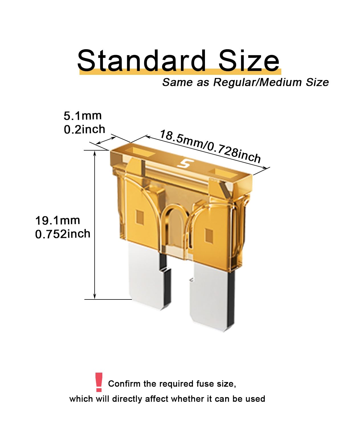 Product Details & Tips - Voltage:32V, Current: 5A, Size: Standard/Regular (This fuse can compatible with lower voltage 12V/24V, but the CURRENT and SIZE must be accurate, Check your desired size and current, which determines whether it can work.)