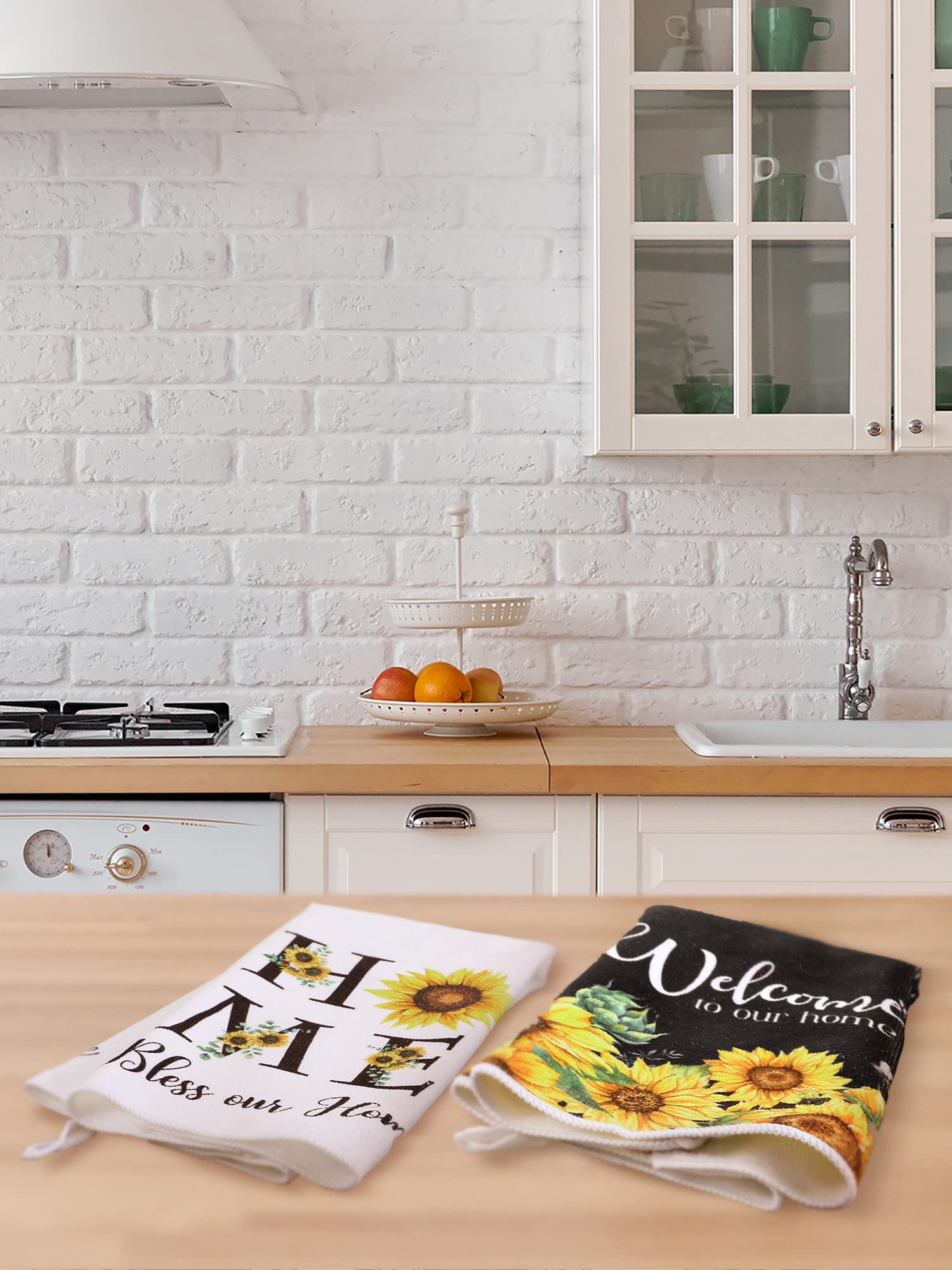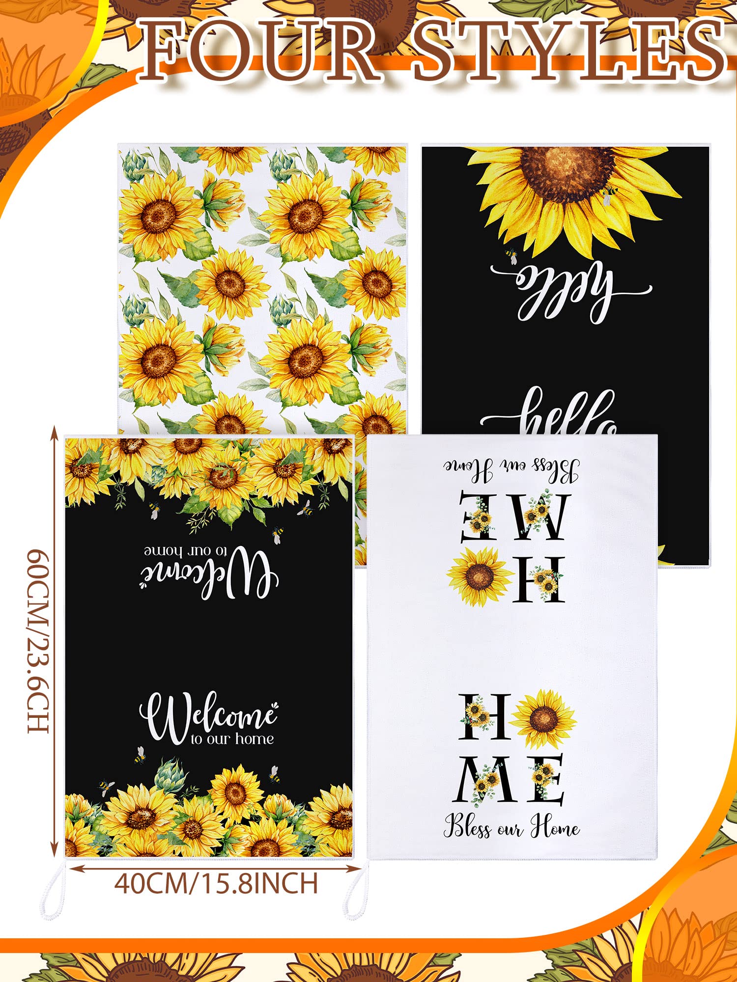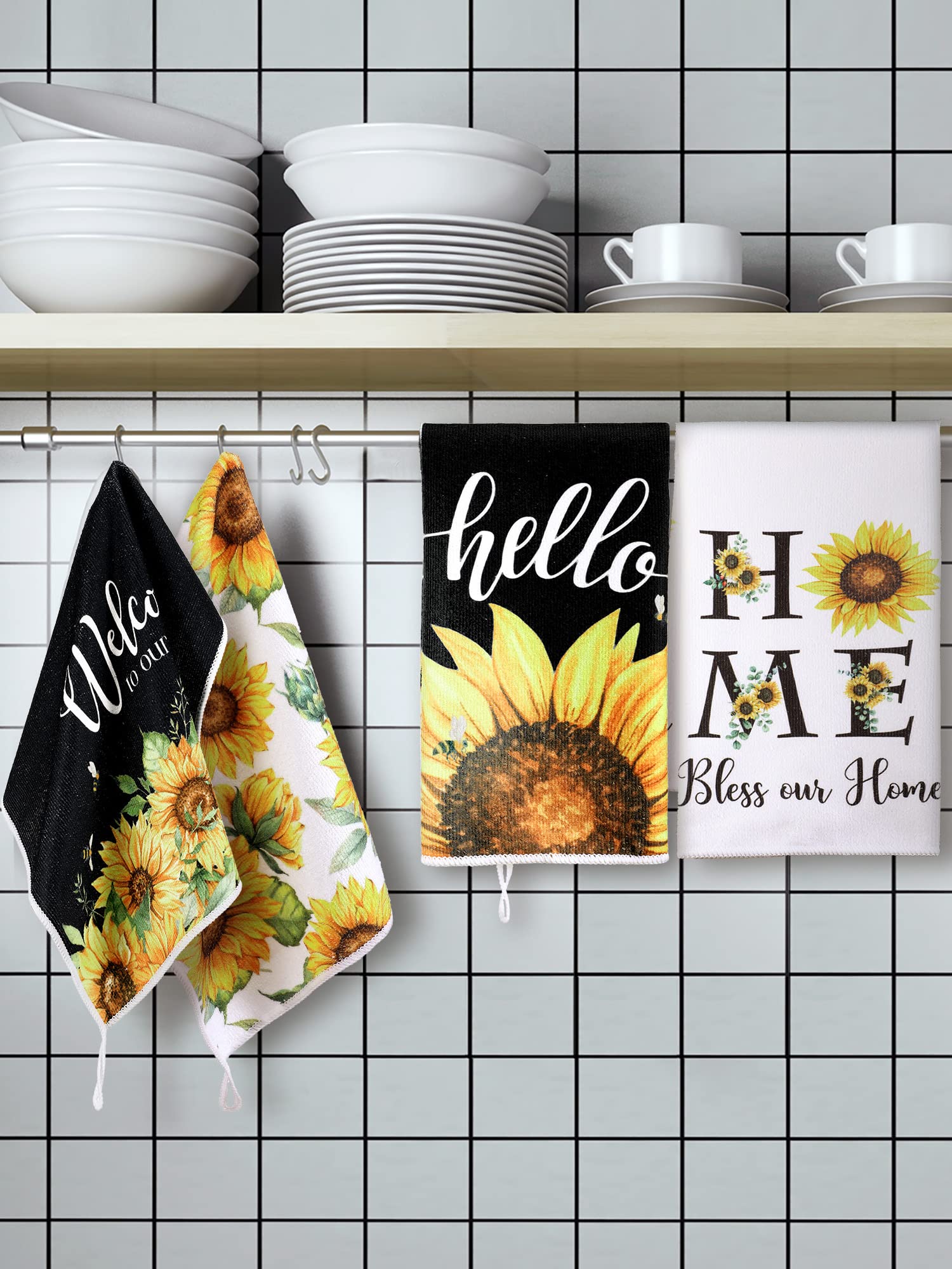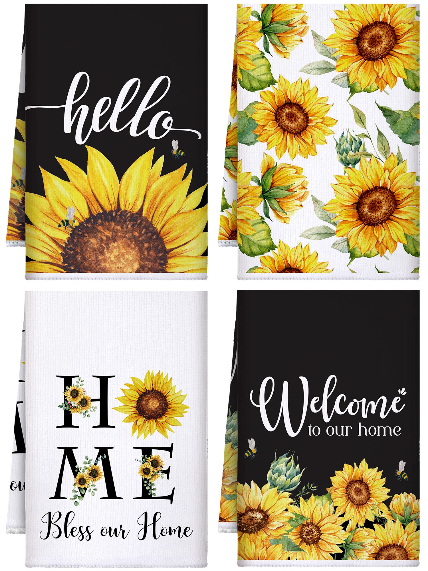Sunflower Themed Design: each kitchen towel is printed with sunflower , stripes, grids patterns, exquisite and lovely, elegant and stylish, the main yellow, white, black colors create a fresh and comfortable spring summer atmosphere, adding bright color to your home and kitchen