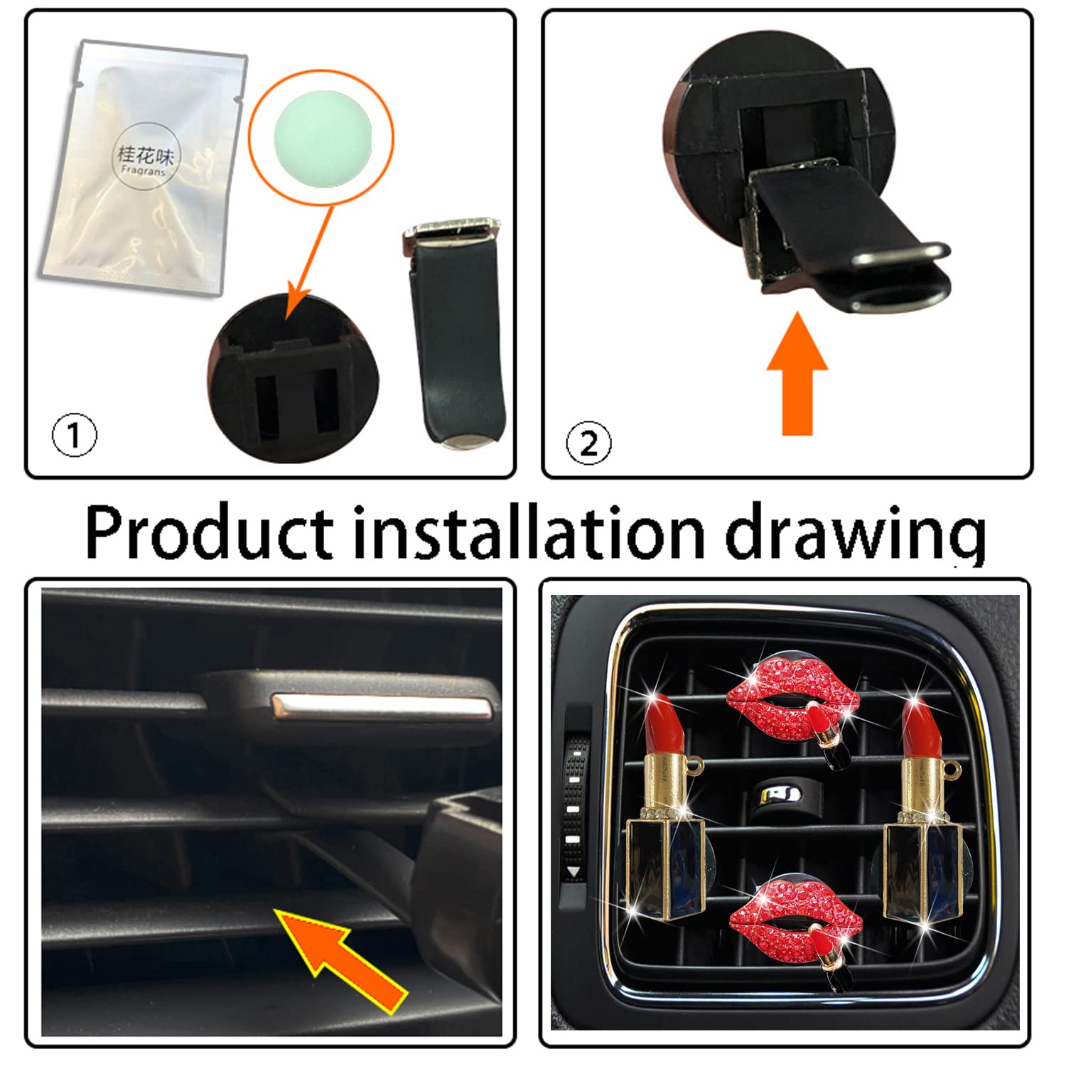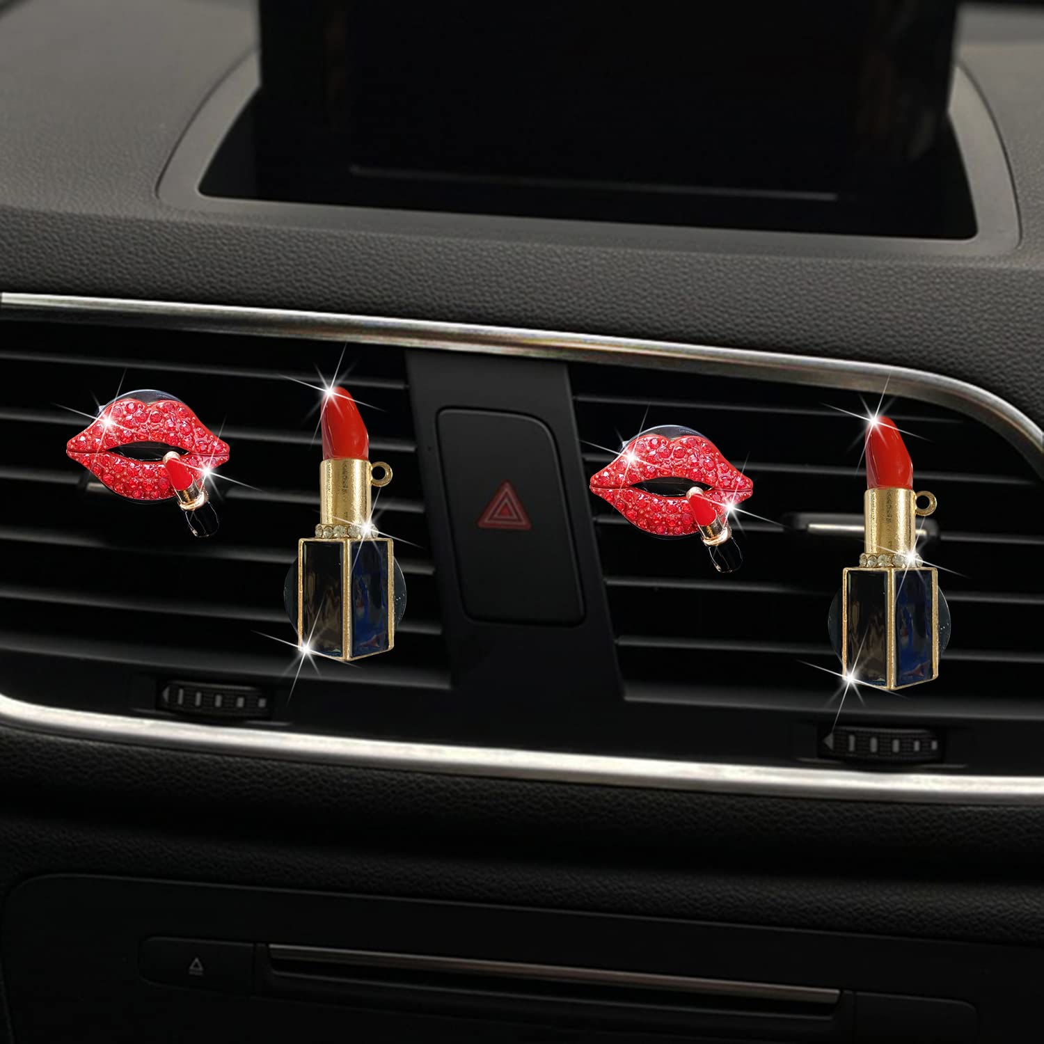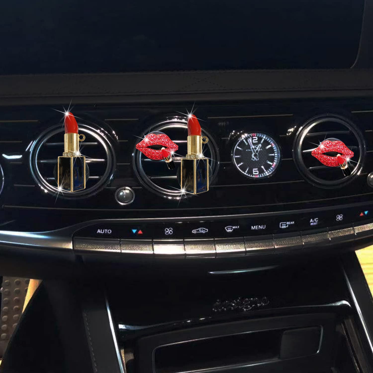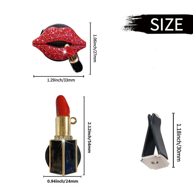 πππMaterials:Red Crystal Kiss Lips w/Lipstick Car Vent Clip-On is made of durable alloy with rhinestone and plastic, non-toxic, durable and lightweight, not easy to be broken, has good fastening force, Cute Automotive Interior Trim can bring you a bedazzled luxurious look