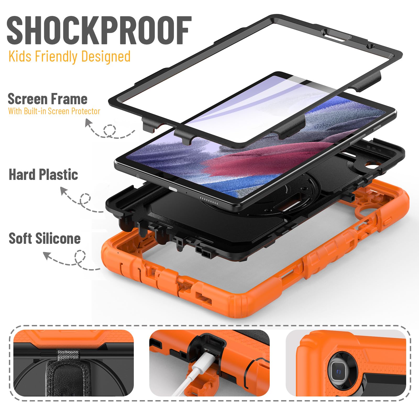 Shockproof & Screen Protector : This case for Galaxy A7 lite tablet is made of anti shock material, soft silicone, hard PC shell and built-in screen protector (2 front cover, one with built-in screen protector and one without), with its sturdy structure to protector your tablet from shock, drop, scratch or accidental damages in daily use.