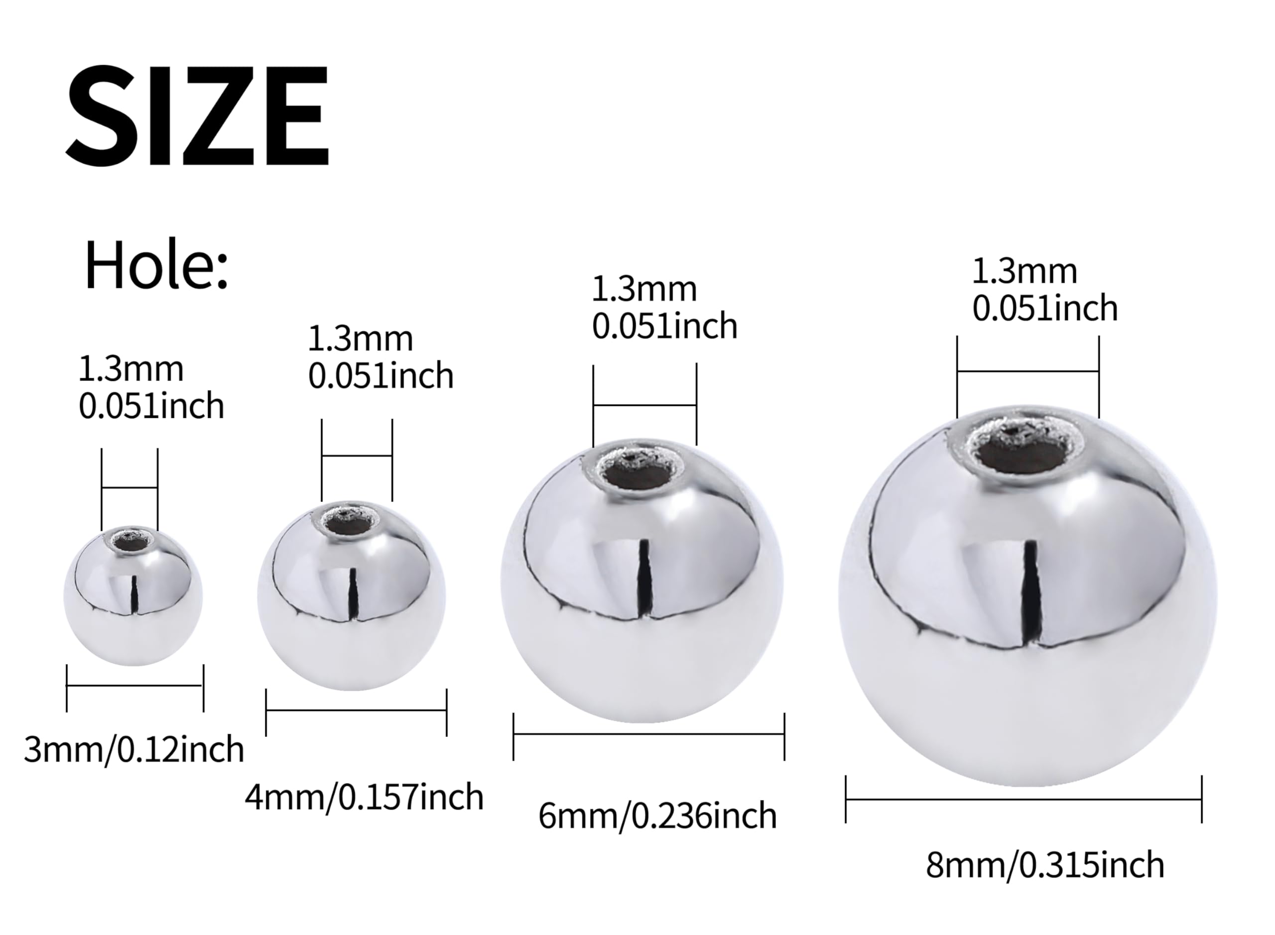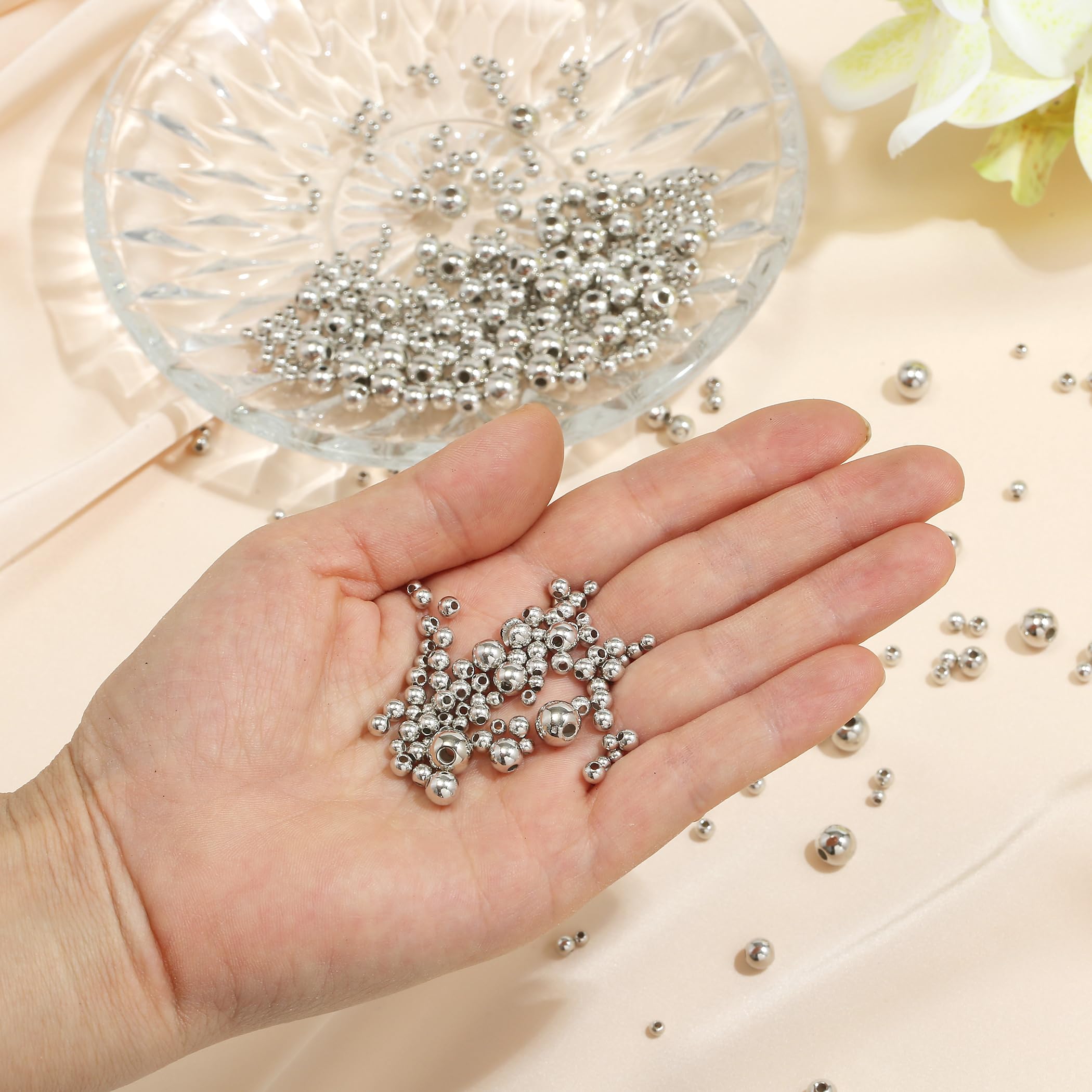 Versatile Bead Kit: This set includes 1100 Silver beads in four various sizes: 400 3mm beads, 400 4mm beads, 200 6mm beads, and 100 8mm beads. This assortment ensures you have the right size for every project, from intricate Silver seed beads designs to bold Silver spacer beads for jewelry making.