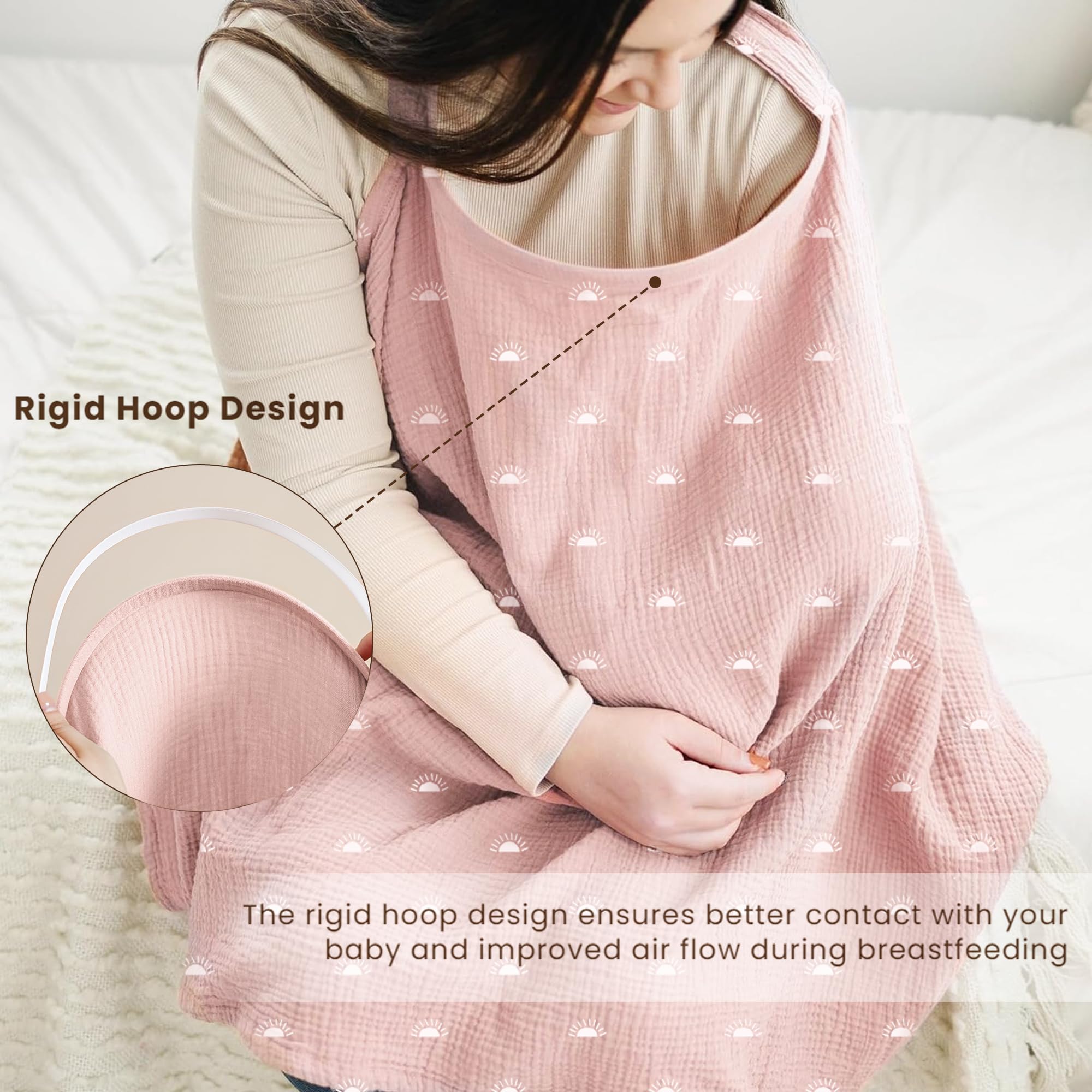Premium Fabric: Nursing cover for breastfeeding are made of 100% cotton (Muslin) for maximum breathable with skin-friendly soft touch and retain its color after washed for several times. It makes both mothers and babies feel comfortable and content during breastfeeding