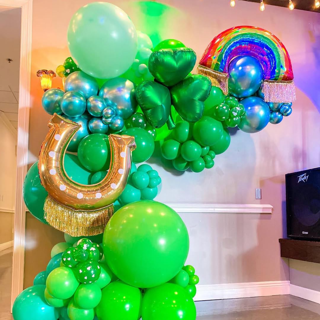【Fantasy Party】: Our patrick's day green balloons are a stunning decoration.different shades dark green emerald green lime green metallic green latex balloons set that will add a touch of elegance and sophistication to any event.green party balloon can be used for party decor jungle safari party supplies st patrick's day party decoration and more event.