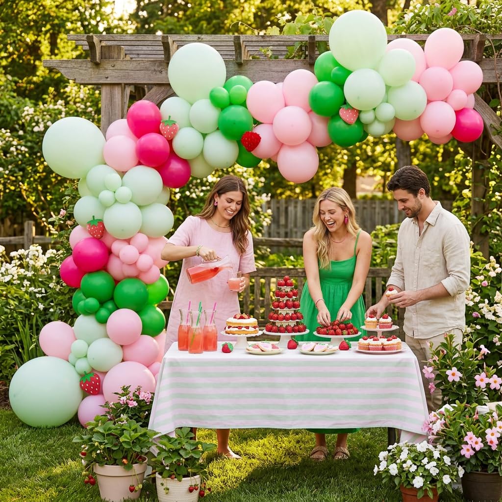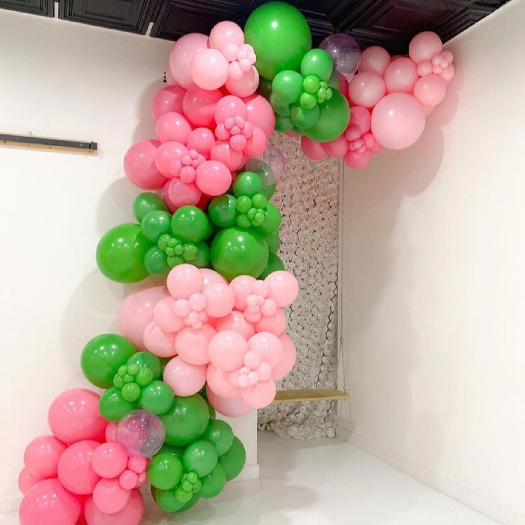 DIY Balloon Decorations: Whether filled with helium for floating displays or air for walls, tables, and backdrops, these pink and green balloons allow you to create custom balloon arrangements and enjoy hands-on party decorating fun