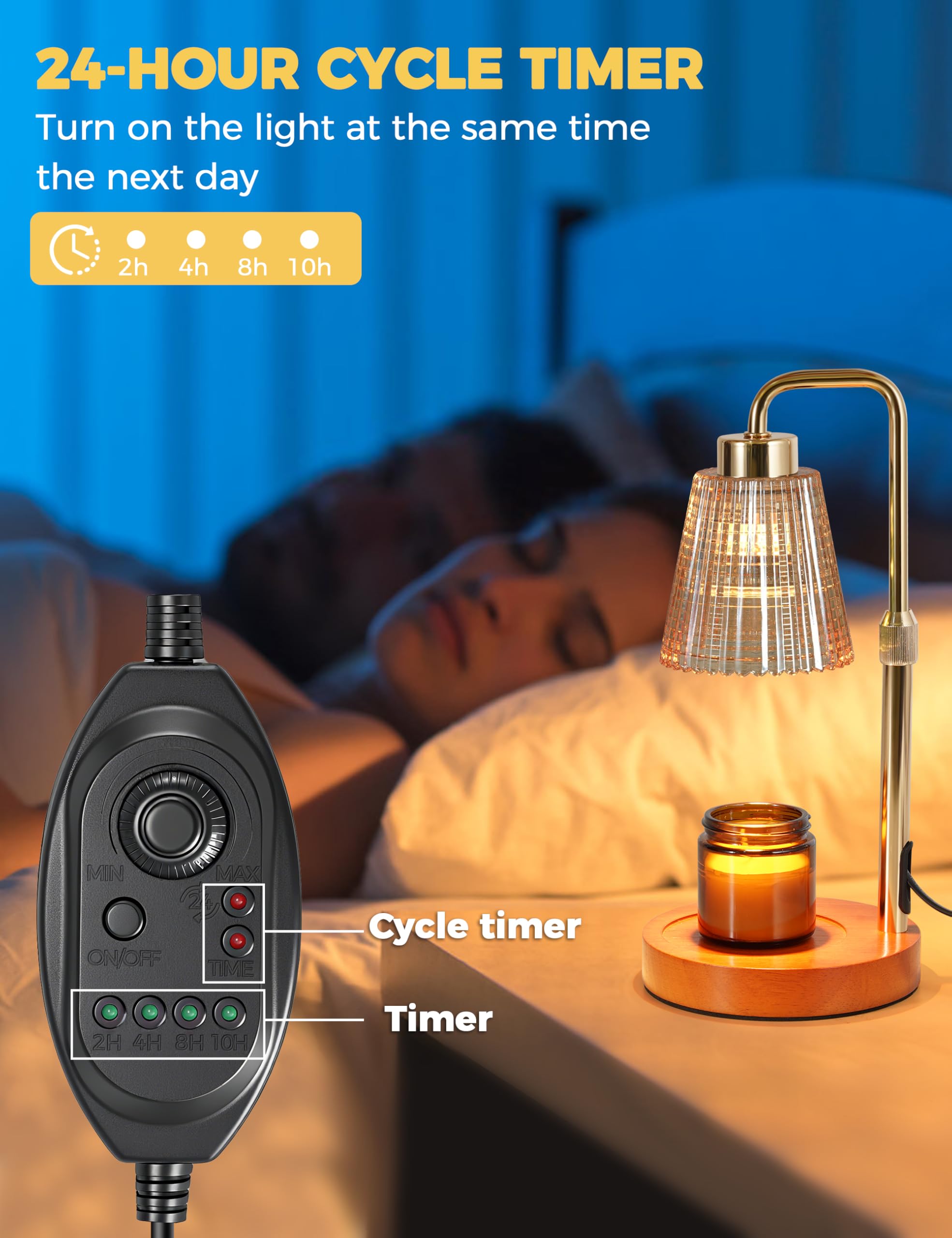 Fully Dimmable and 12-Hour Timing Function: Enjoy complete control over the ambiance with our dimmable knob, offering unrestricted dimming for personalized melting speeds. Additionally, our Candle+Warmer+Lamp boasts a convenient timer function, ensuring a perfect atmosphere tailored to your preferences, facilitating uninterrupted sweet dreams.