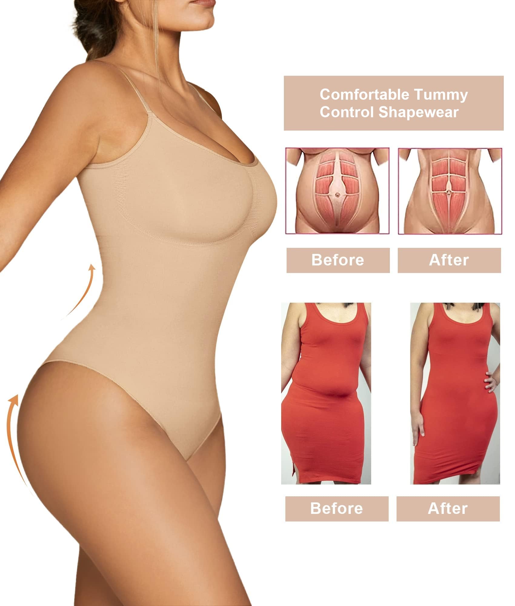 Tummy Control Bodysuit : This seamless shapewear holds in your core, lifts your chest, and smooths your abdomen. Its whisper-soft and seamless construction makes this shaper piece a necessity for enhancing your body' natural shape.
