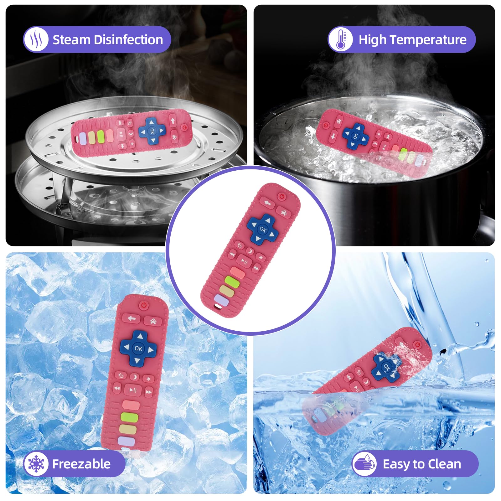 【Material Safety】Baby teething toys are made of food-grade silicone. Resistant to high and low temperatures, can be boiled, steam or refrigerated, -50° to 230°!