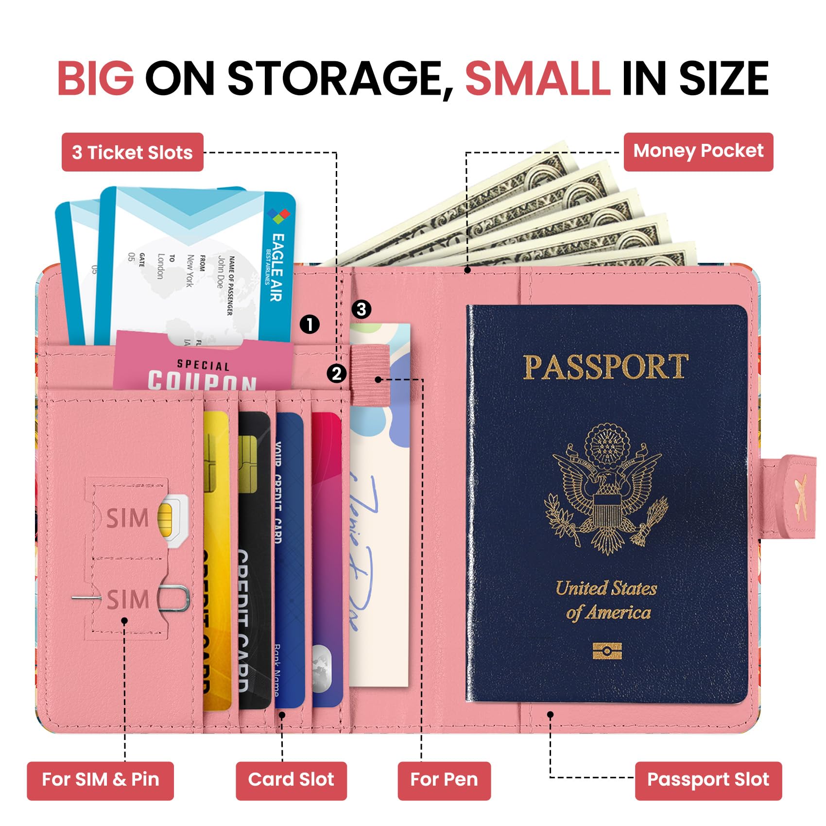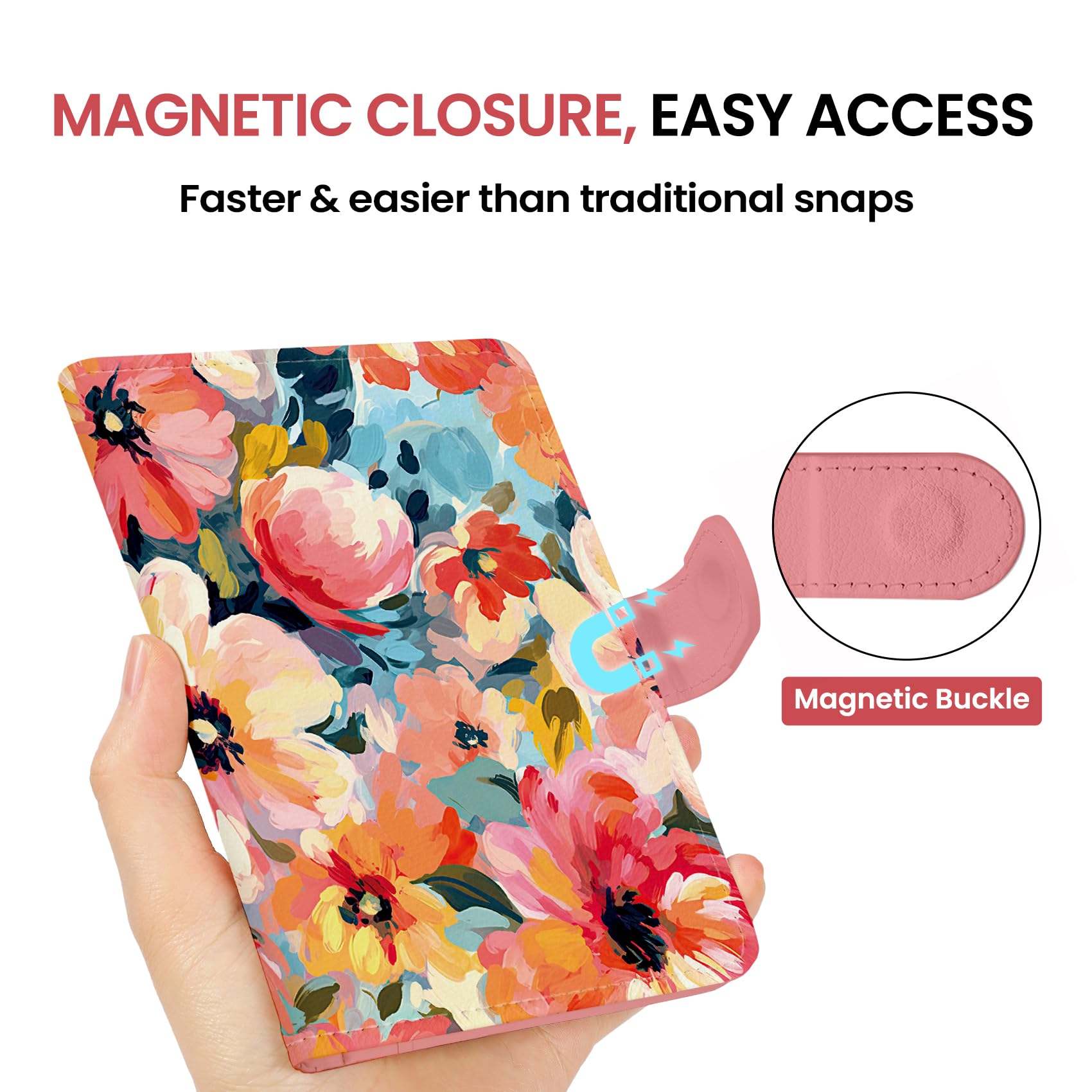 Instant Access & Magnetic Closure: Access your travel essentials in a snap. Our passport holder features a smooth magnetic closure for quick entry and secure storage - no more fumbling with zippers or snaps. Designed for effortless travel.