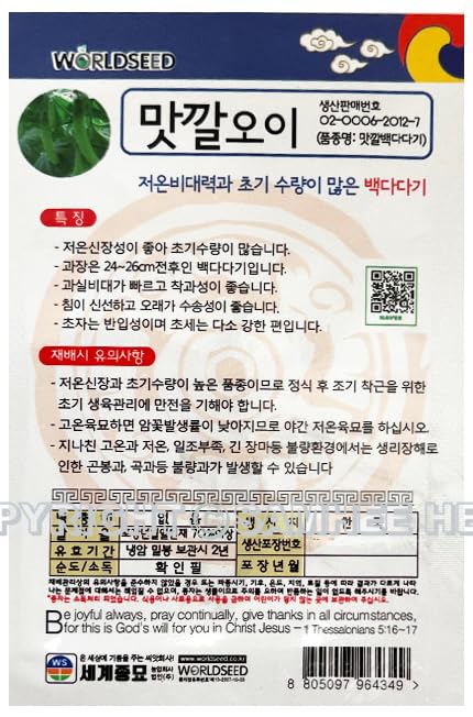 Cucumber Plant Seeds Korean, 1 Pack, 4 Gram (오이). Imported from Korea. Product from WorldSeed.