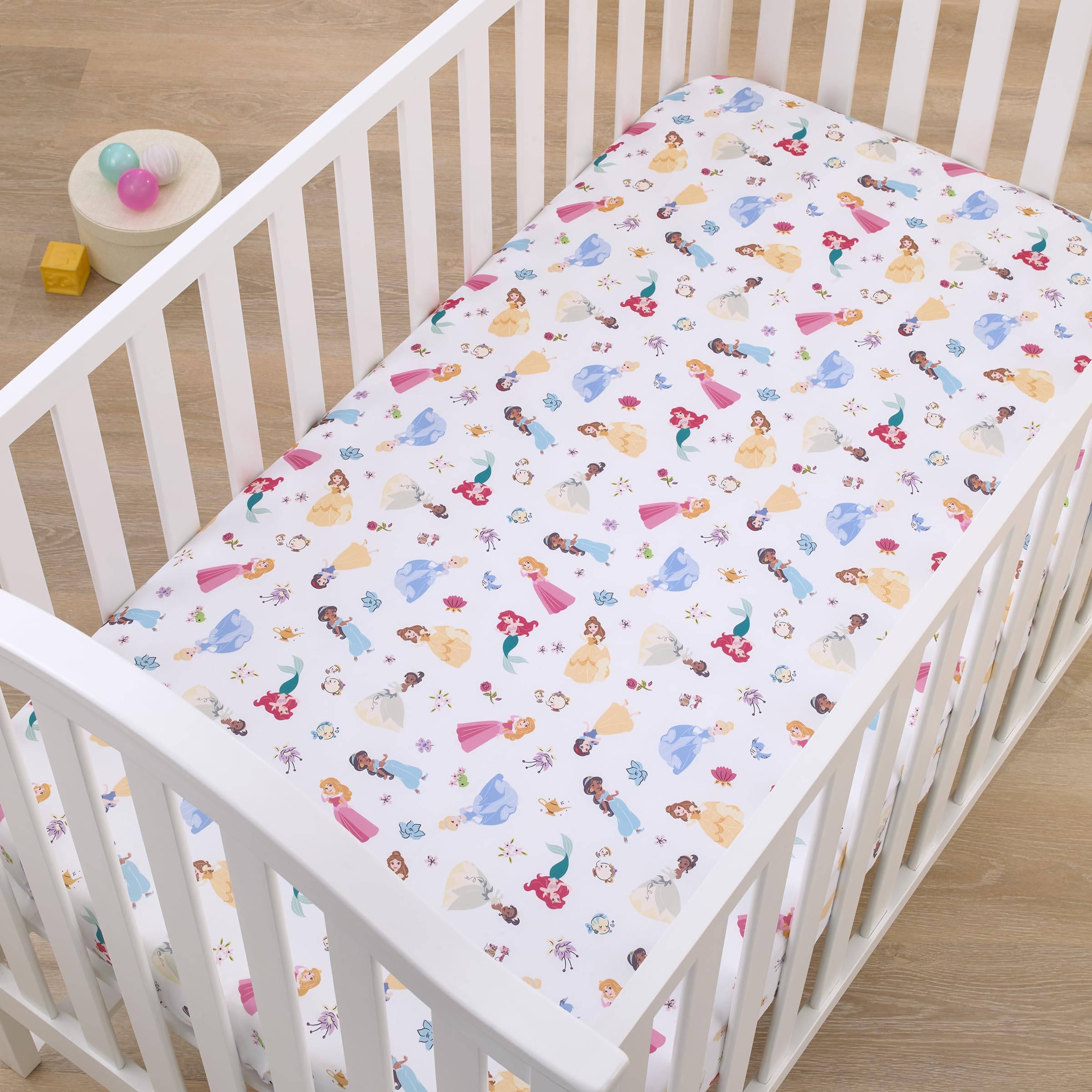 Pretty Princesses are enchanting on this adorable Disney Fitted Crib Sheet!