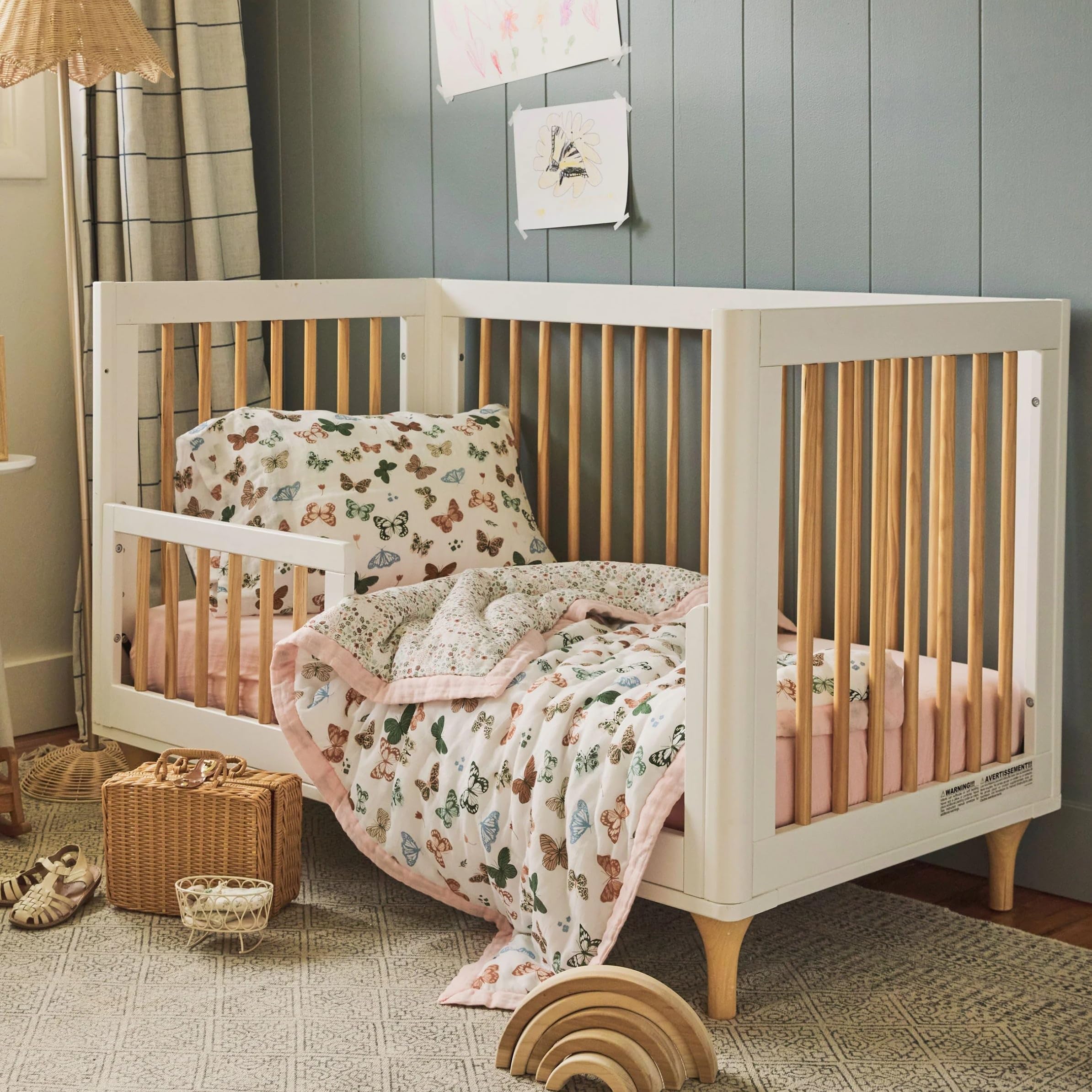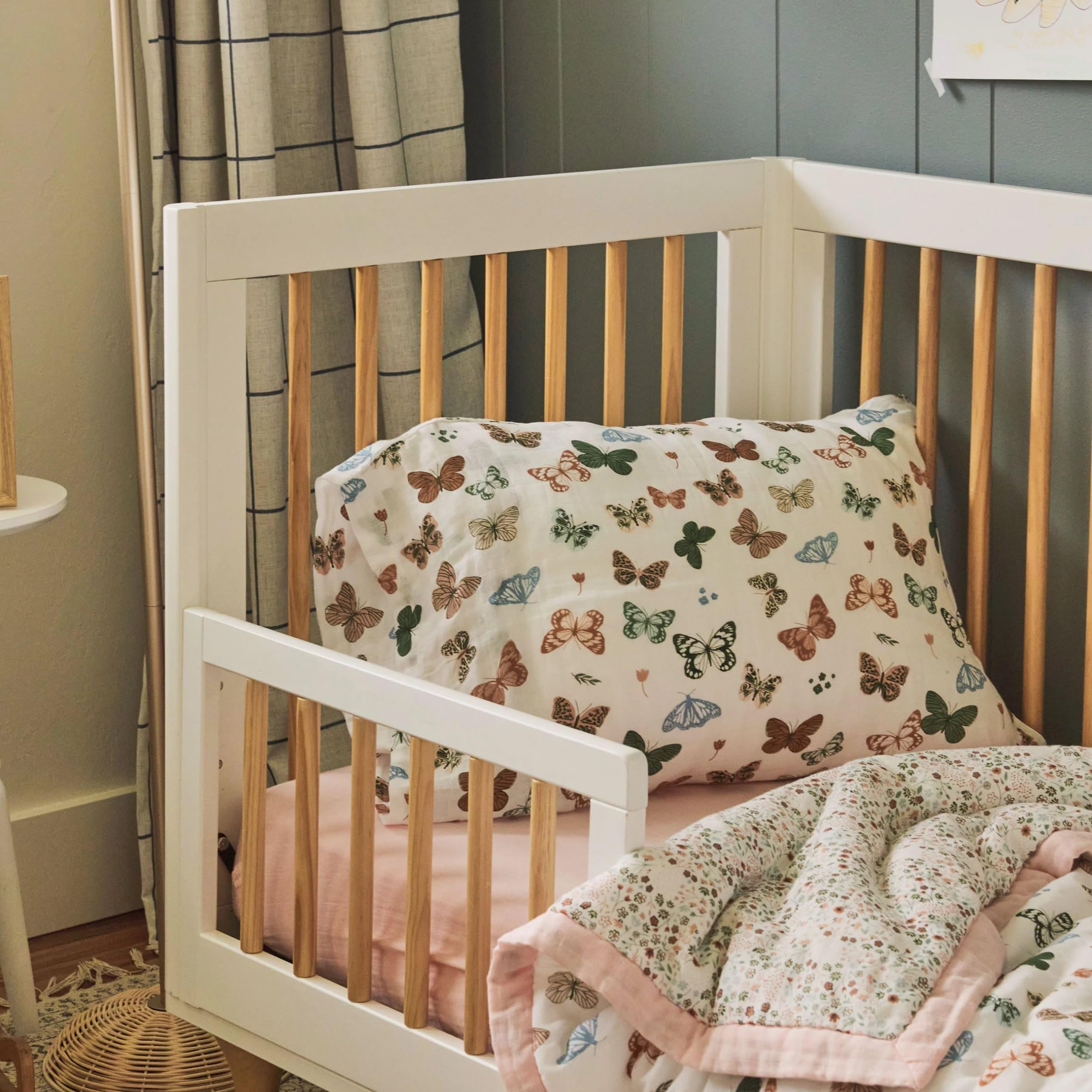 MUSLIN BENEFITS: Owing to its open weave, this light, breathable muslin fabric helps prevent overheating. It is also highly absorbent, wicking away moisture, spills, or messes.