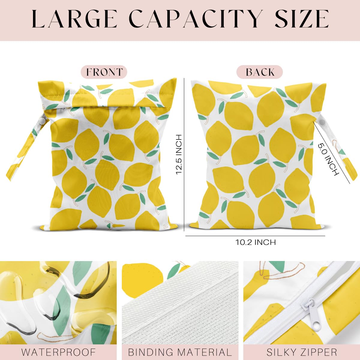 π MULTI-FUNCTIONAL β Our wet bags have lots of uses. They are suit for carrying wet swimsuit bag diapers, wet swimsuits and sanitary napkin, menstrual pad; not just for wet stuff - these bags make excellent organizers for toys, cosmetics, accessories, toiletries, electronics, travel and more. With a snap handle, snap your bag wherever you need it - changingοΌsuitcase, table or tote bag.