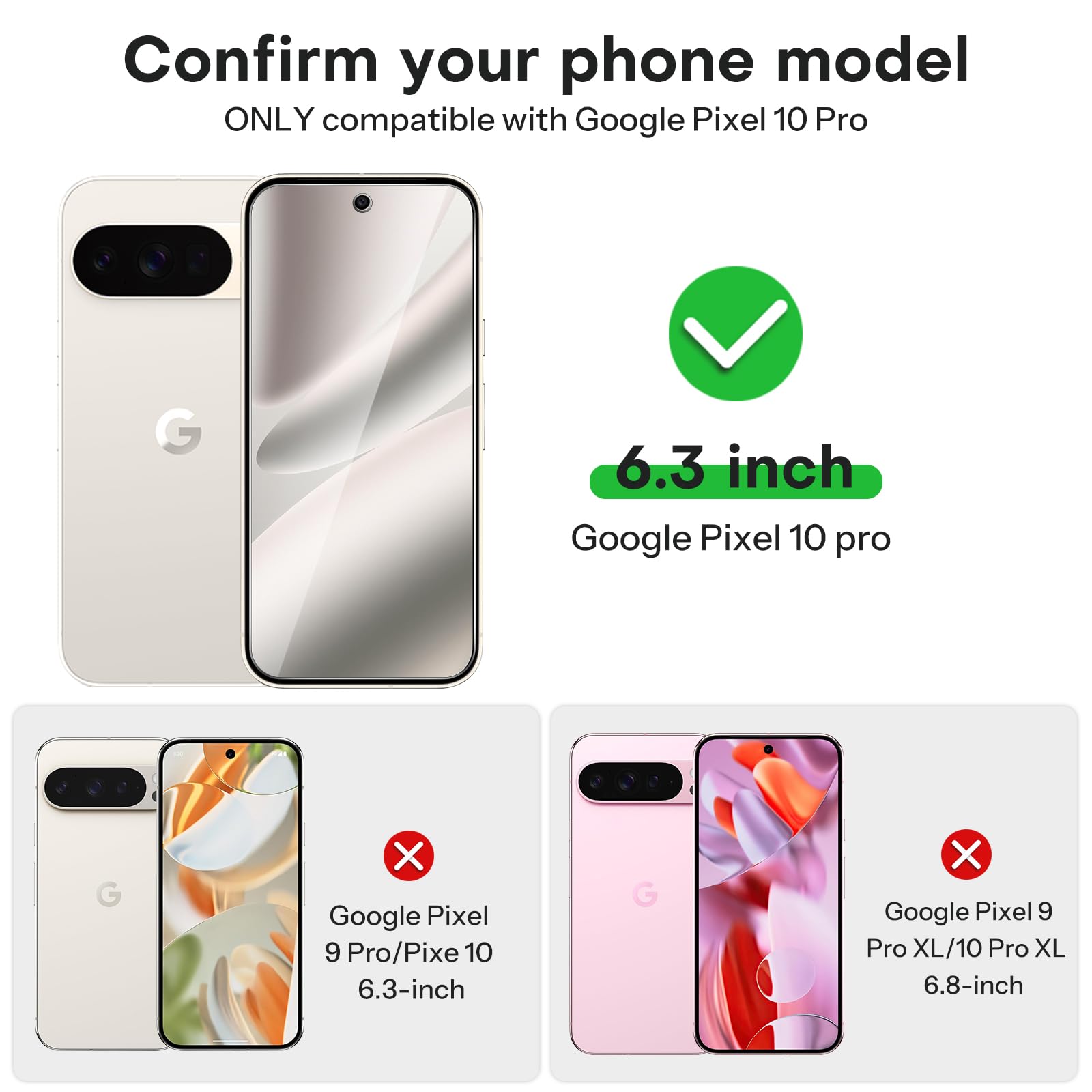 Check Your Model: ONLY compatible with Pixel 10 Pro. NOT fit for Pixel 10 and Pixel 10 Pro XL or any other phone models. Please check your pixel model through "Settings--About Phone--Model"